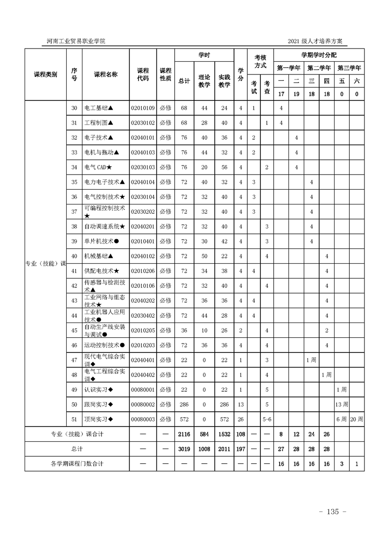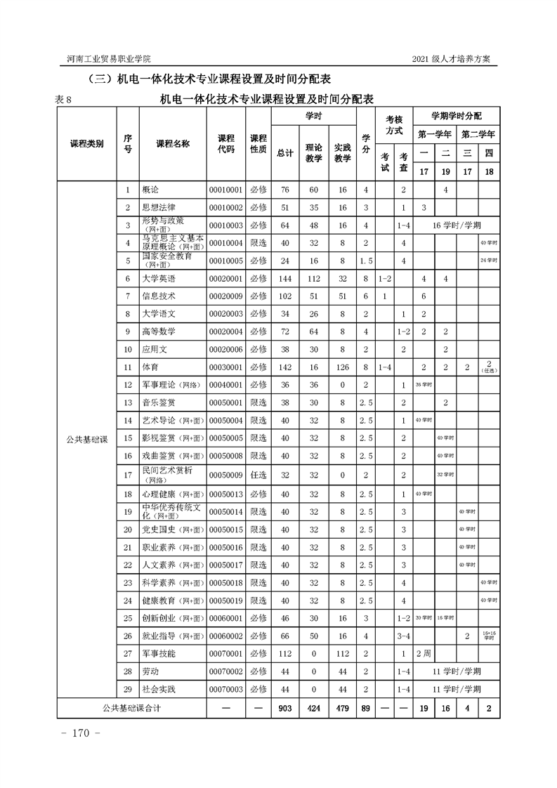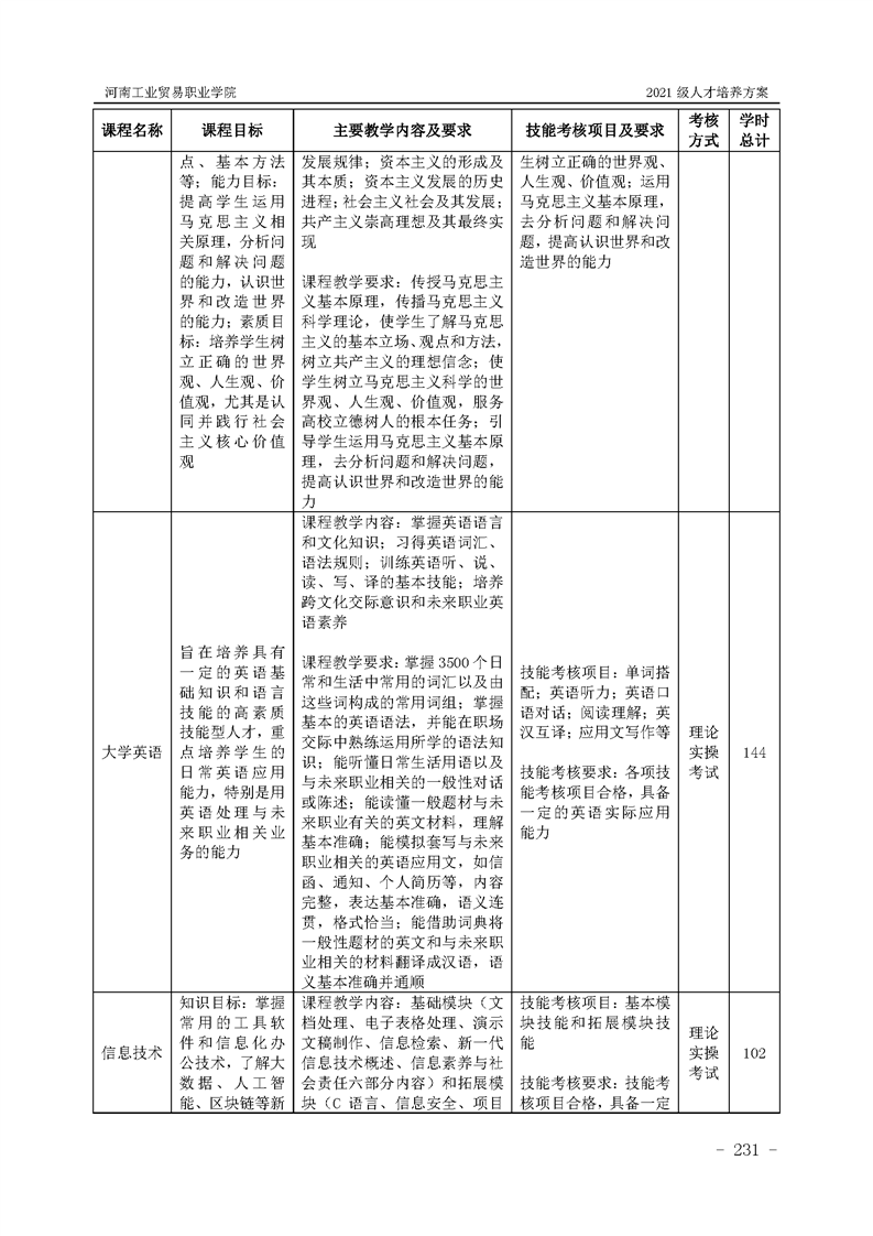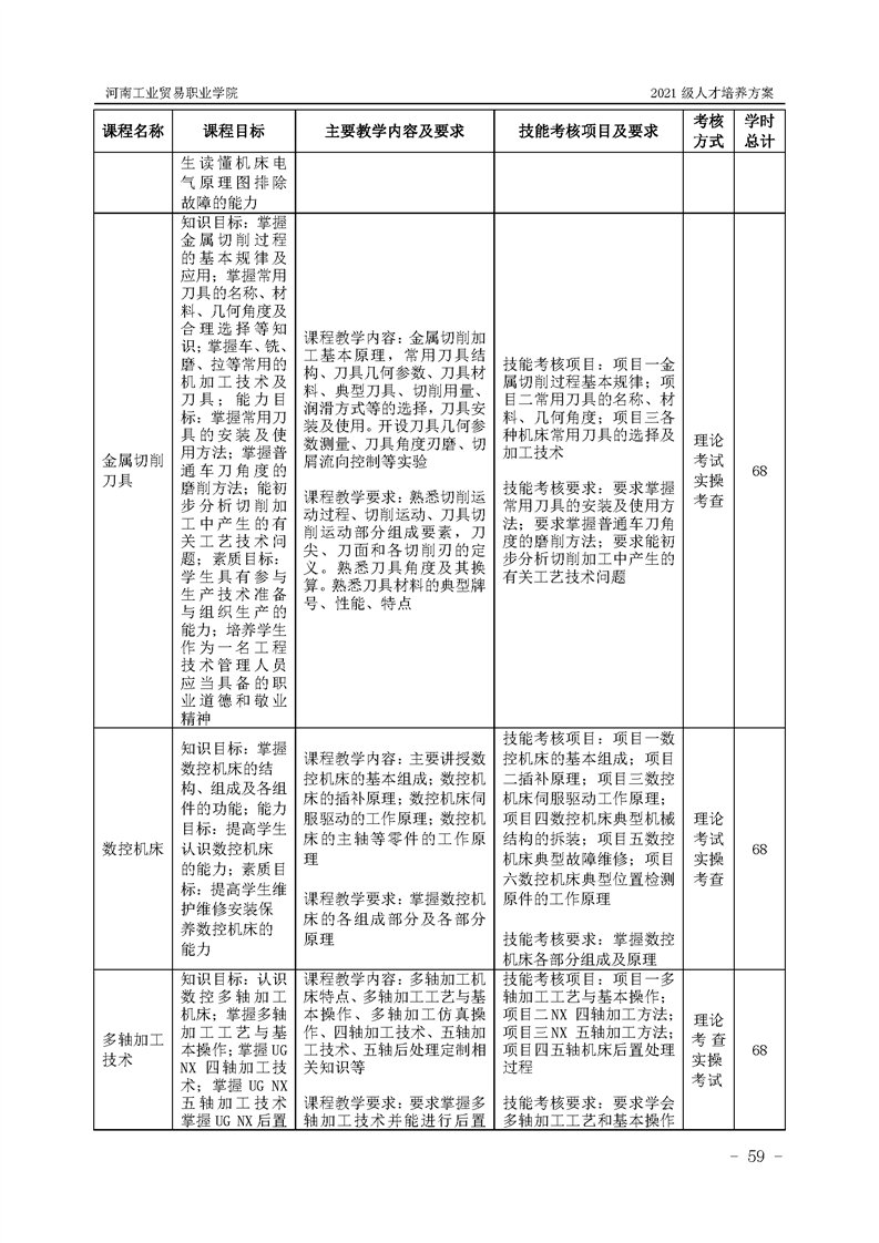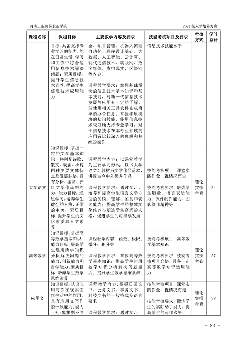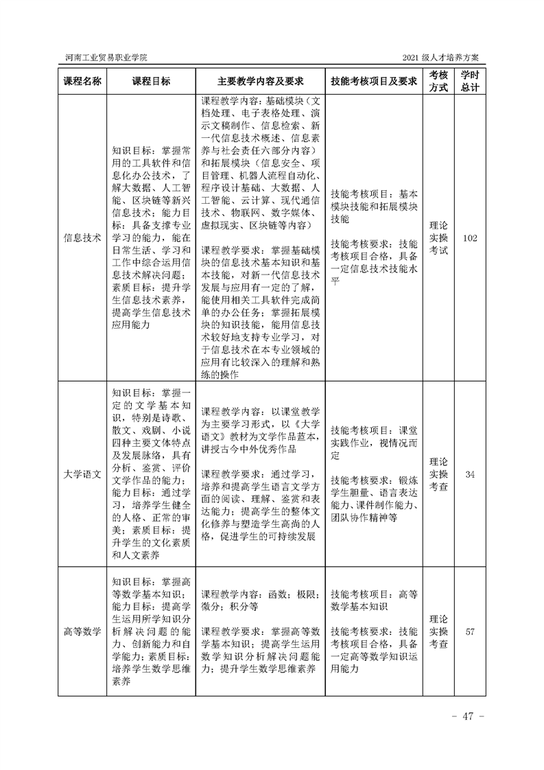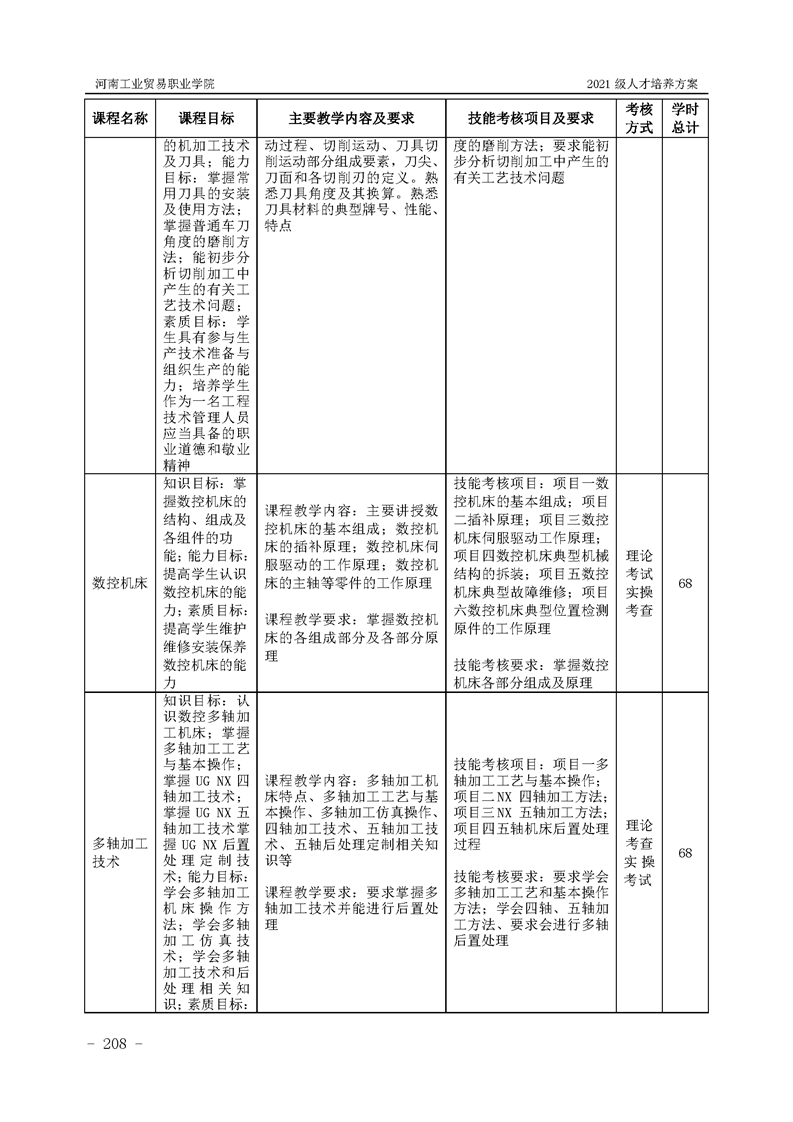 2.河南工业贸易职业学院2021级机电工程学院人才培养方案