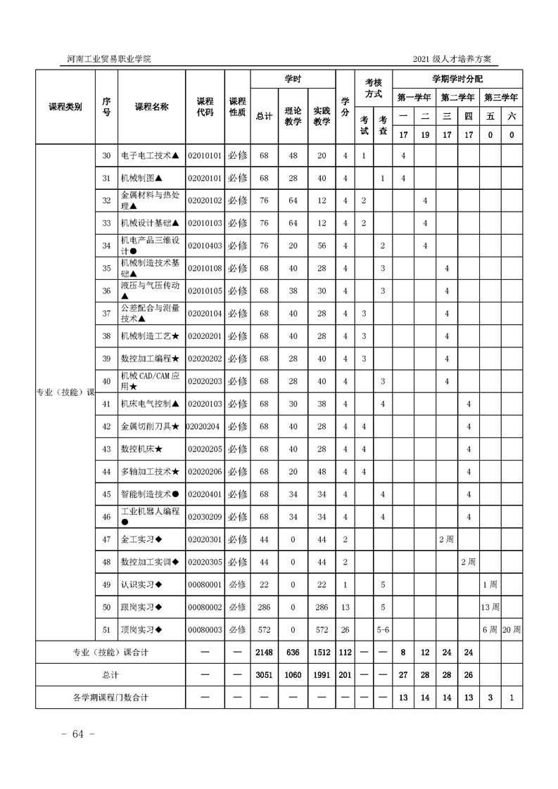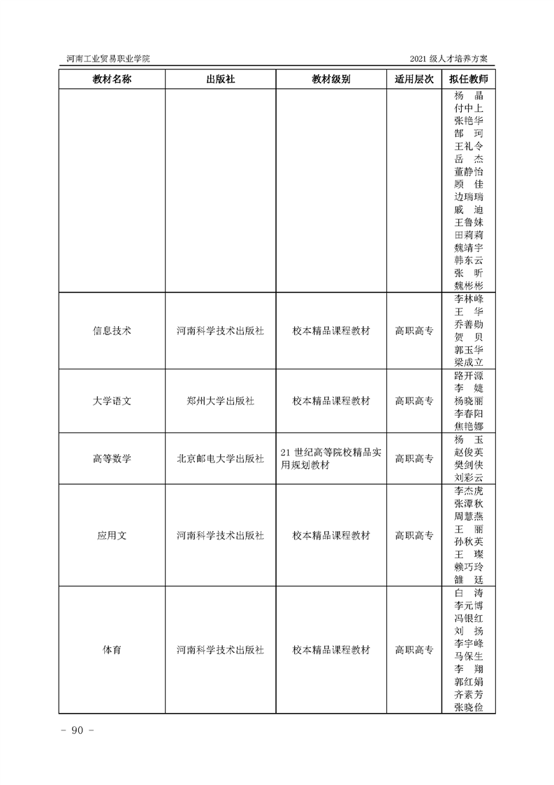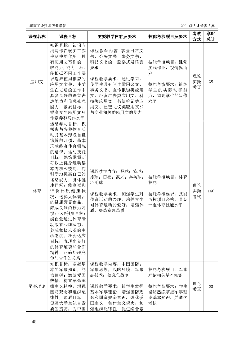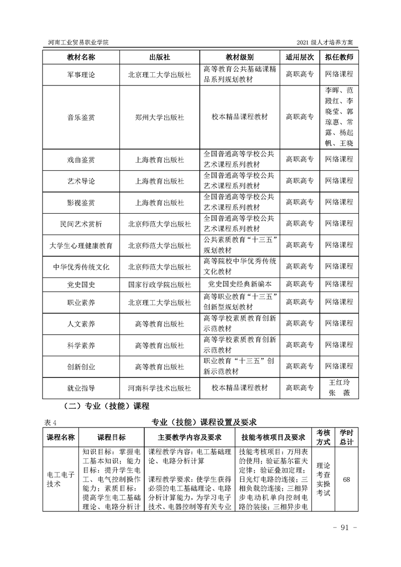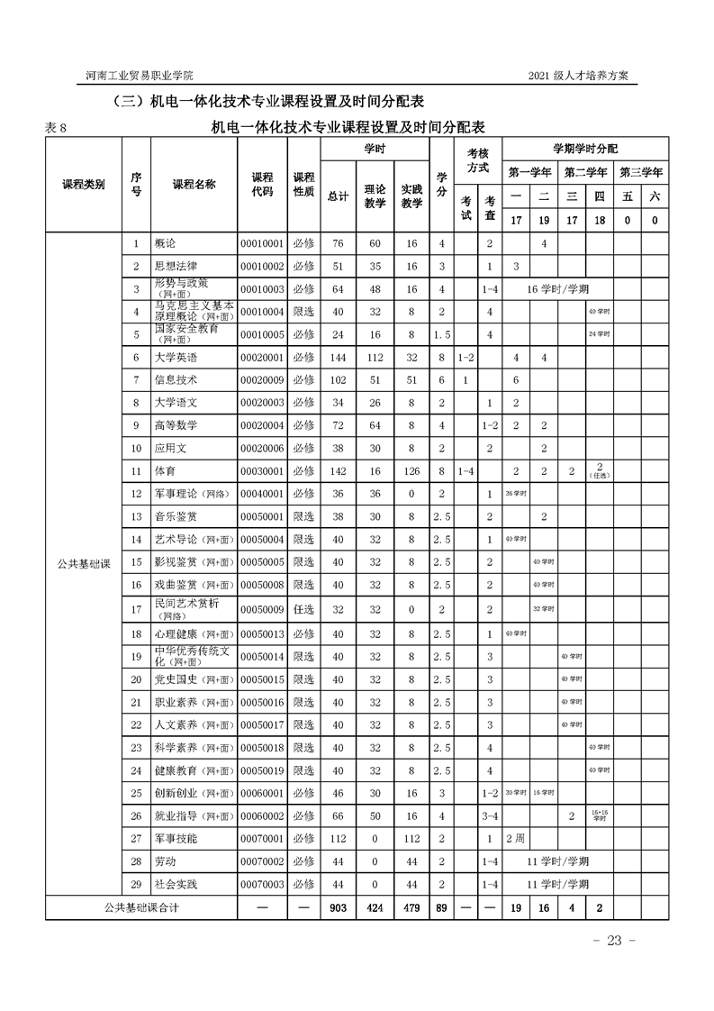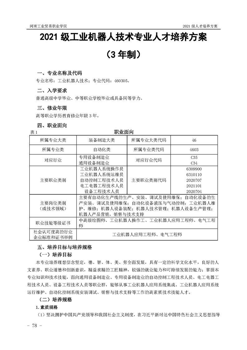 2.河南工业贸易职业学院2021级机电工程学院人才培养方案