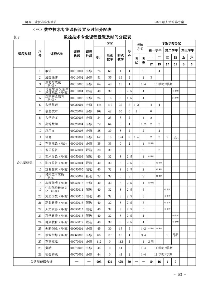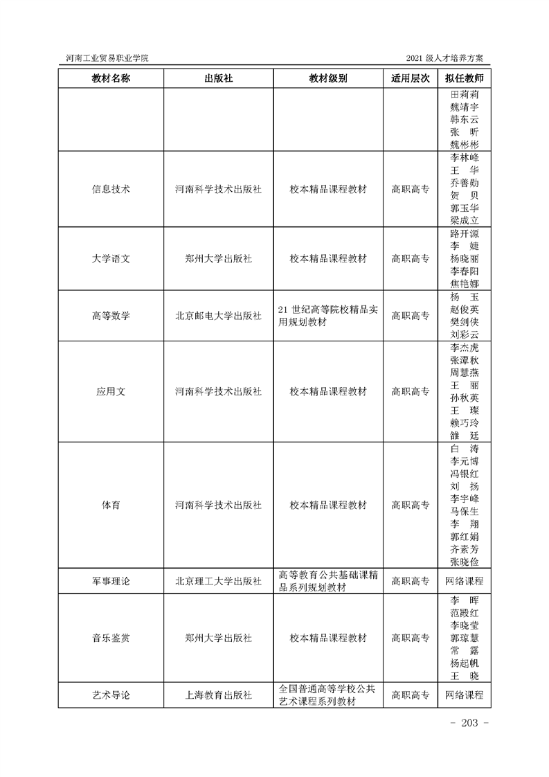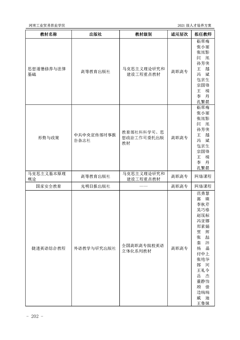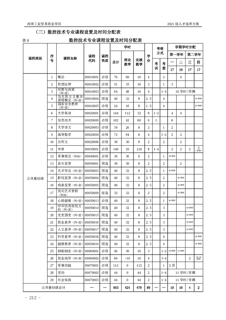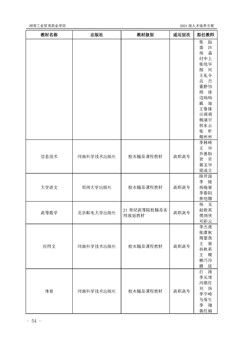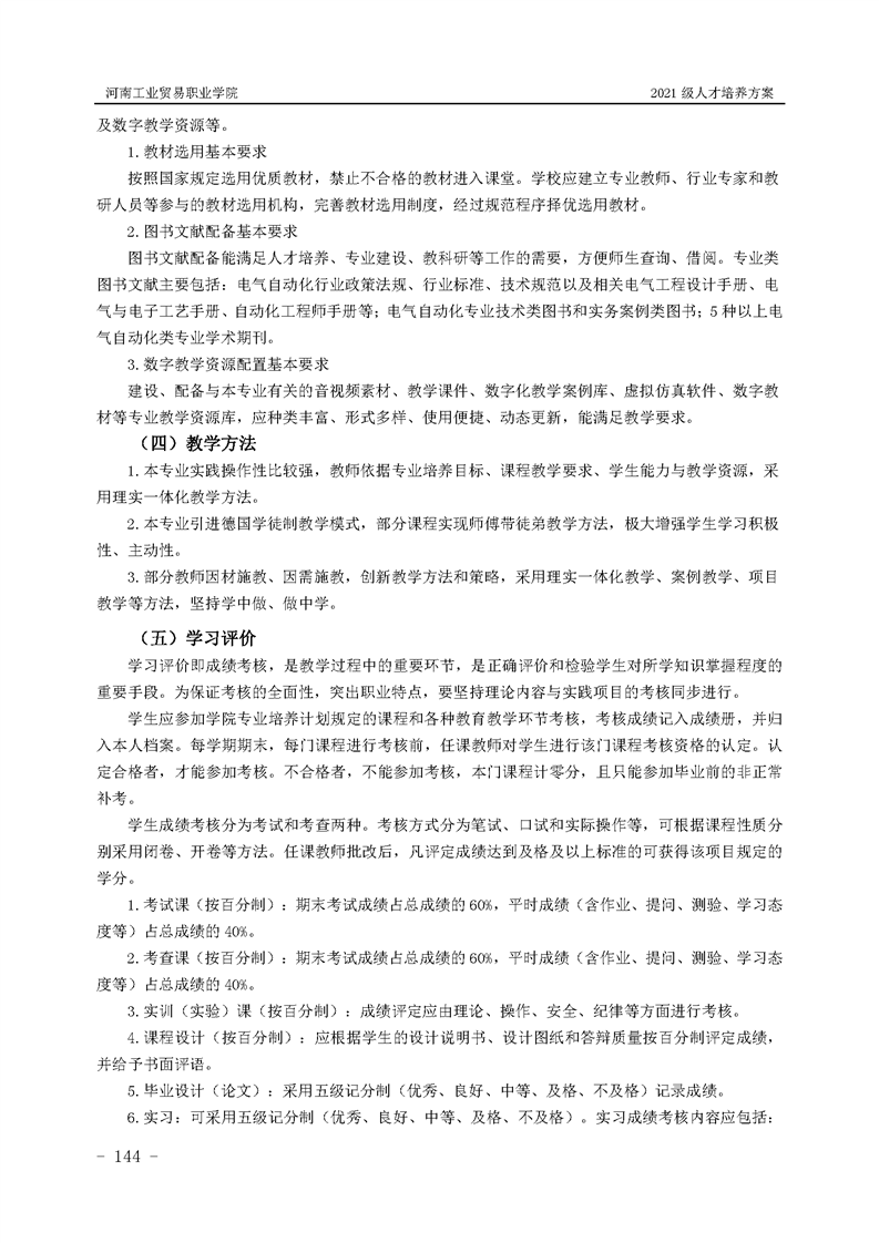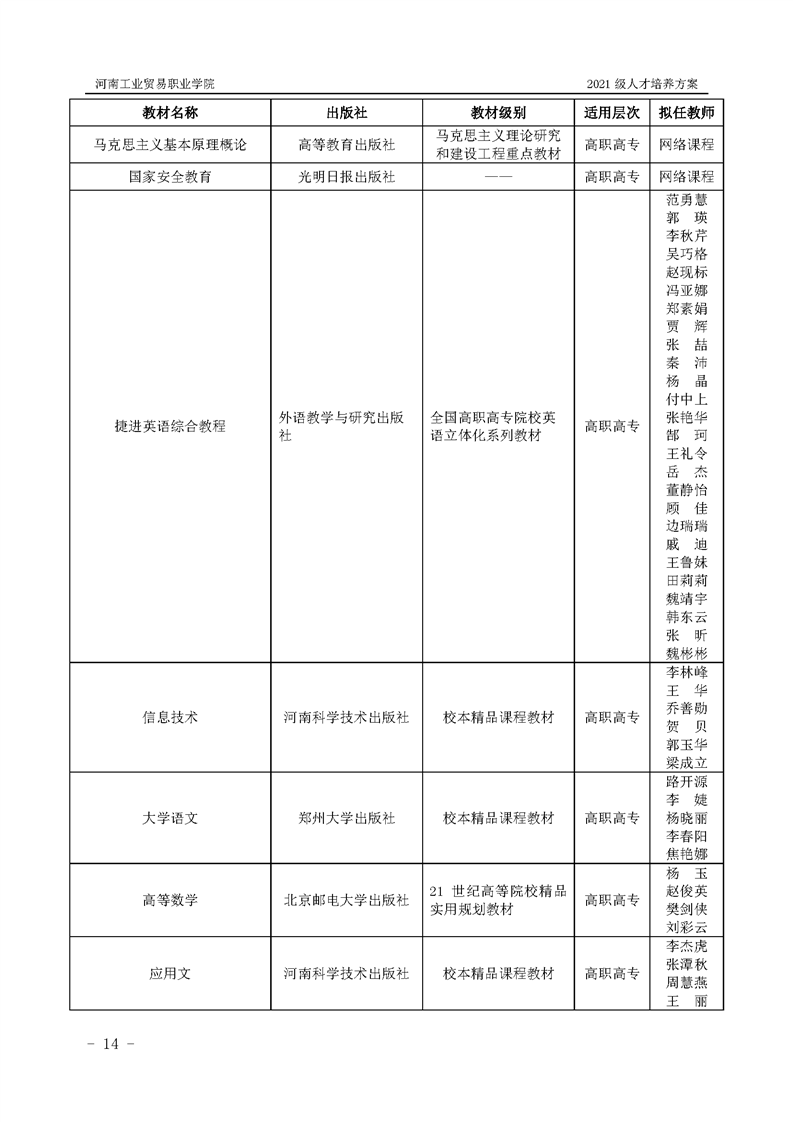 2.河南工业贸易职业学院2021级机电工程学院人才培养方案