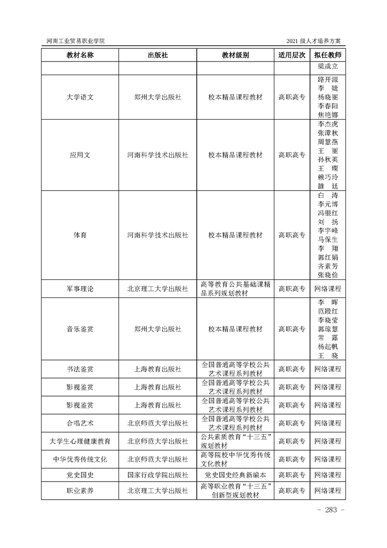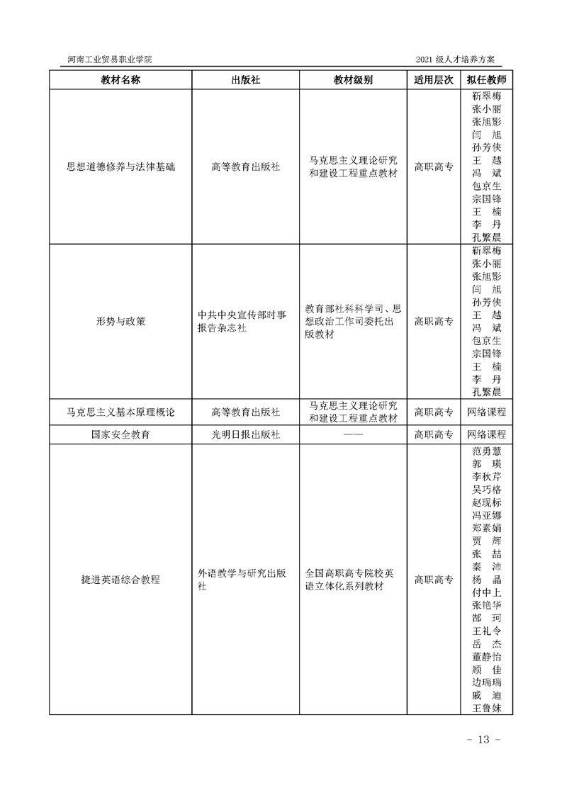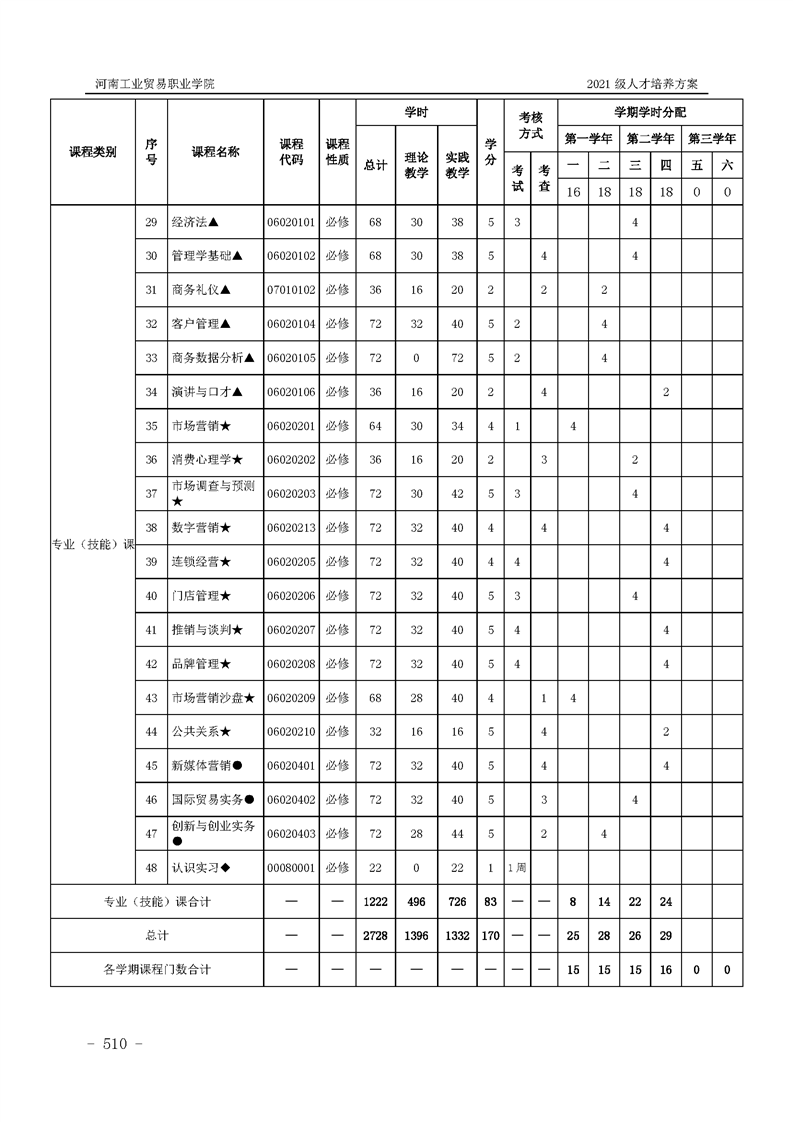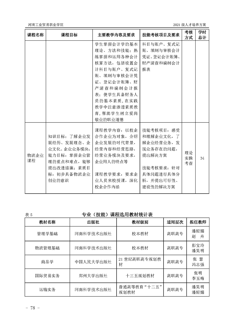 6.河南工业贸易职业学院2021级经济贸易学院人才培养方案