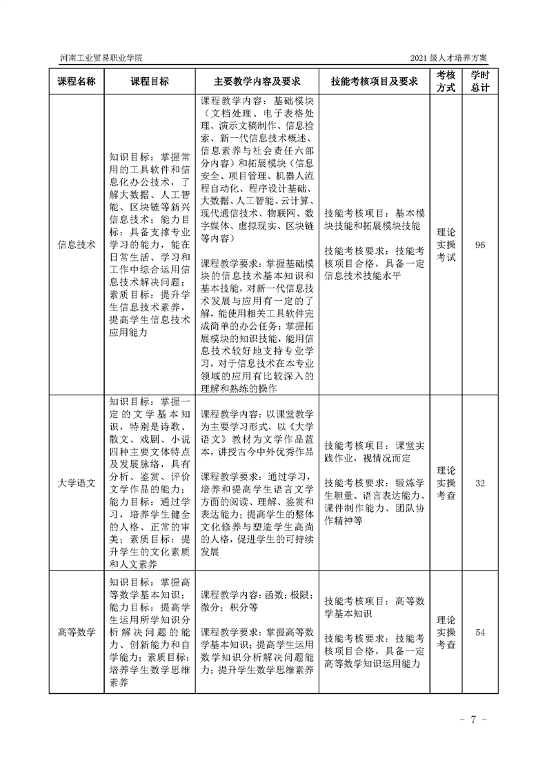 7.河南工业贸易职业学院2021级工商管理学院人才培养方案