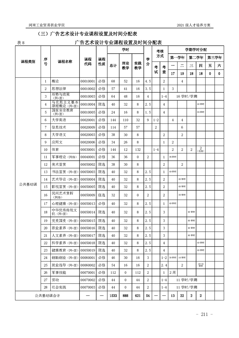 8.河南工业贸易职业学院2021级艺术设计学院人才培养方案