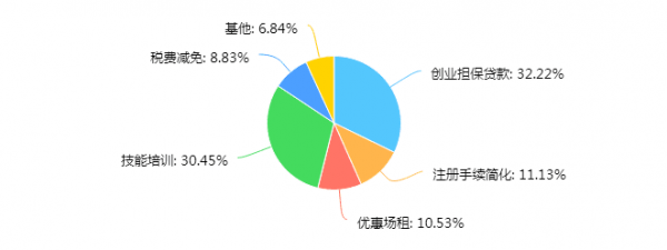 2016年毕业生认为最需要的扶持政策是创业贷款占32.22%,其次是技能培训30.45%。
