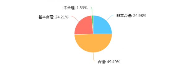 24.98%的毕业生认为所学专业课程开设非常合理,1.33%的毕业生认为不合理。