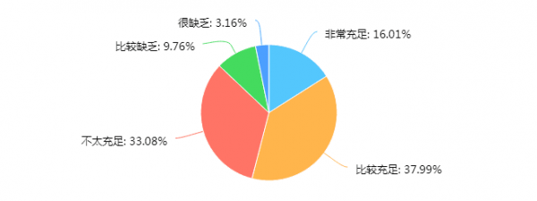 16.01%的毕业生认为在校期间所学专业的实践环节非常充足,37.99%的毕业生认为比较充足,33.08%的毕业生认为不太充足,9.76%的毕业生认为比较缺乏,3.16%的毕业生认为很缺乏。