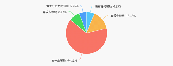 64.21%的毕业生认为学院开展的创业教育与指导对自己有一定帮助,6.19%的毕业生认为没有任何帮助。