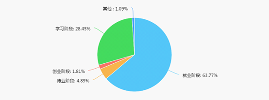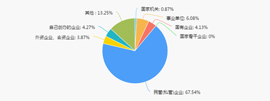 67.54%毕业生在民营(私营)企业工作,较17年下降1个百分点;在国家机关事业单位及国有企业工作的占11.08%,与去年持平;外资合资企业工作的占3.87%;在自有企业工作的占4.27%;其他占13.25%。