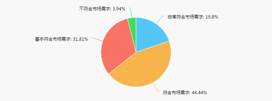 在专业方面,19.80%毕业生认为所学专业非常符合市场需求,44.44%的学生认为符合市场需求,31.81%的学生认为基本符合市场需求,3.94%的学生不符合市场需求。