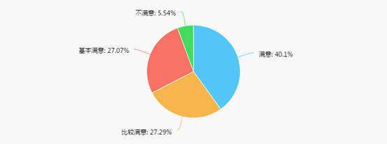 40.1%的毕业生对学院的就业工作表示满意,比去年下降了三个百分点,27.29%的毕业生比较满意, 27.07%的毕业生认为基本满意,5.54%的毕业生表示不满意。