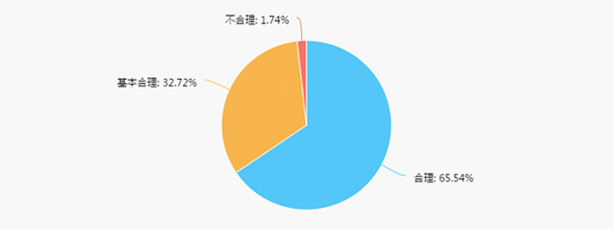 65.54%的毕业生认为学院教学方法与教学手段合理,1.74%的毕业生认为不合理。