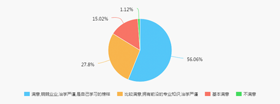 56.06%毕业生对学院师资水平表示满意,认为学院师资队伍兢兢业业、治学严谨,是自己学习的榜样。