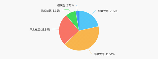 21.50%的毕业生认为在校期间所学专业的实践环节非常充足,41.51%的毕业生认为比较充足,25.95%的毕业生认为不太充足,8.32%的毕业生认为比较缺乏,2.71%的毕业生认为很缺乏。