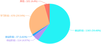 使用学院就业管理系统的调查平台,数据统计科学、准确、高效。本次调查共回收问卷2297份,抽样比率为53.93%。
