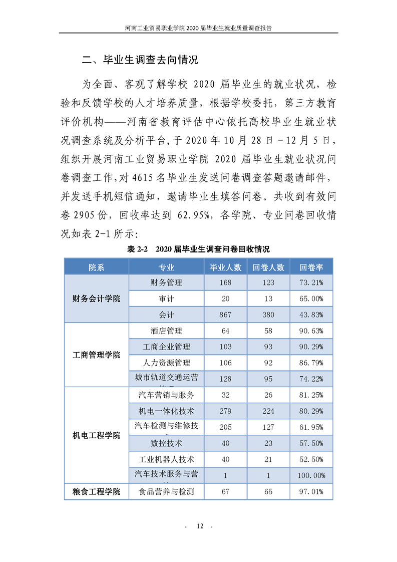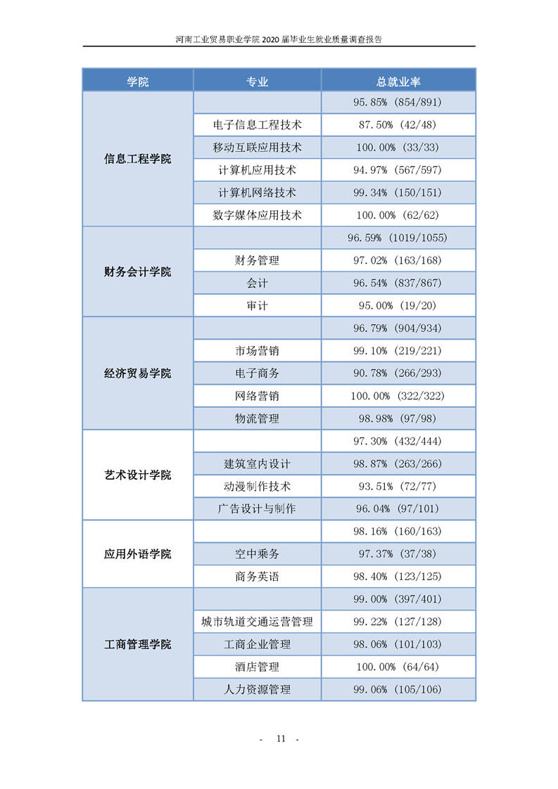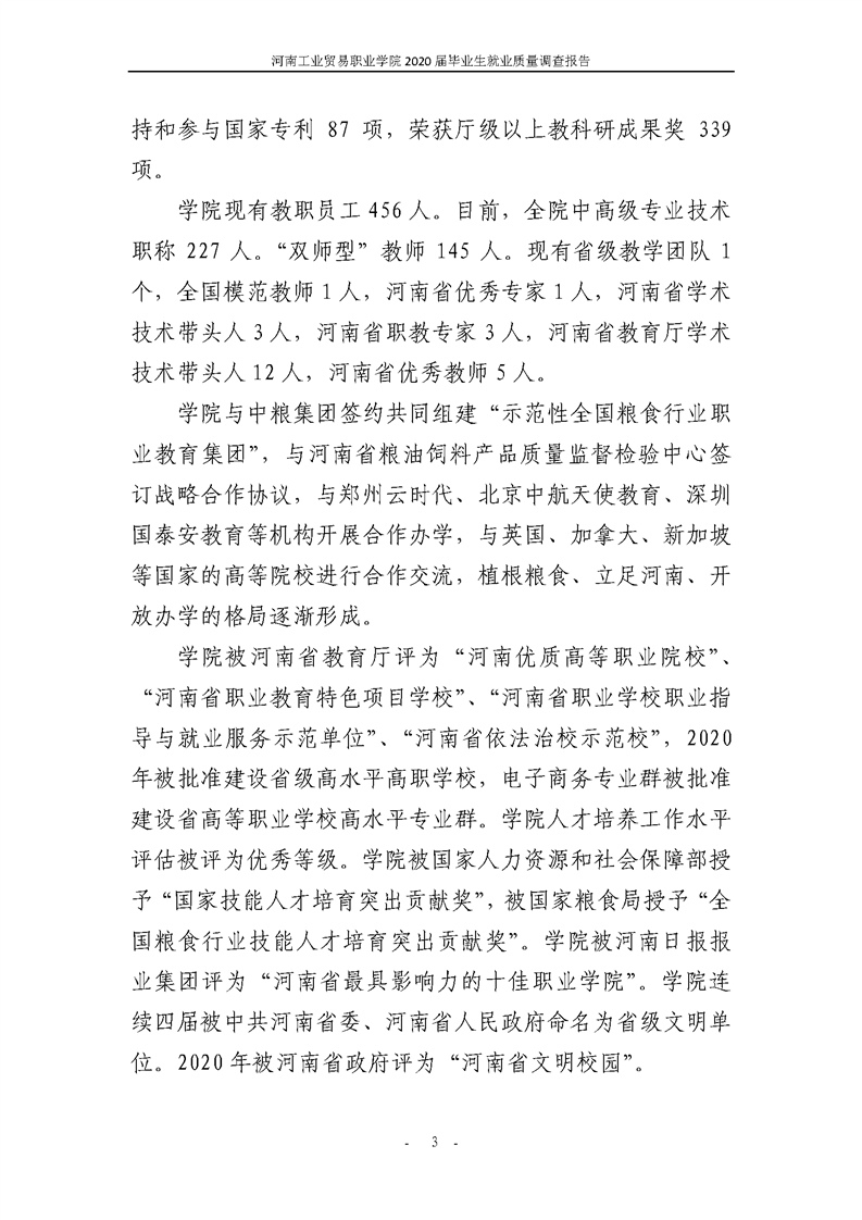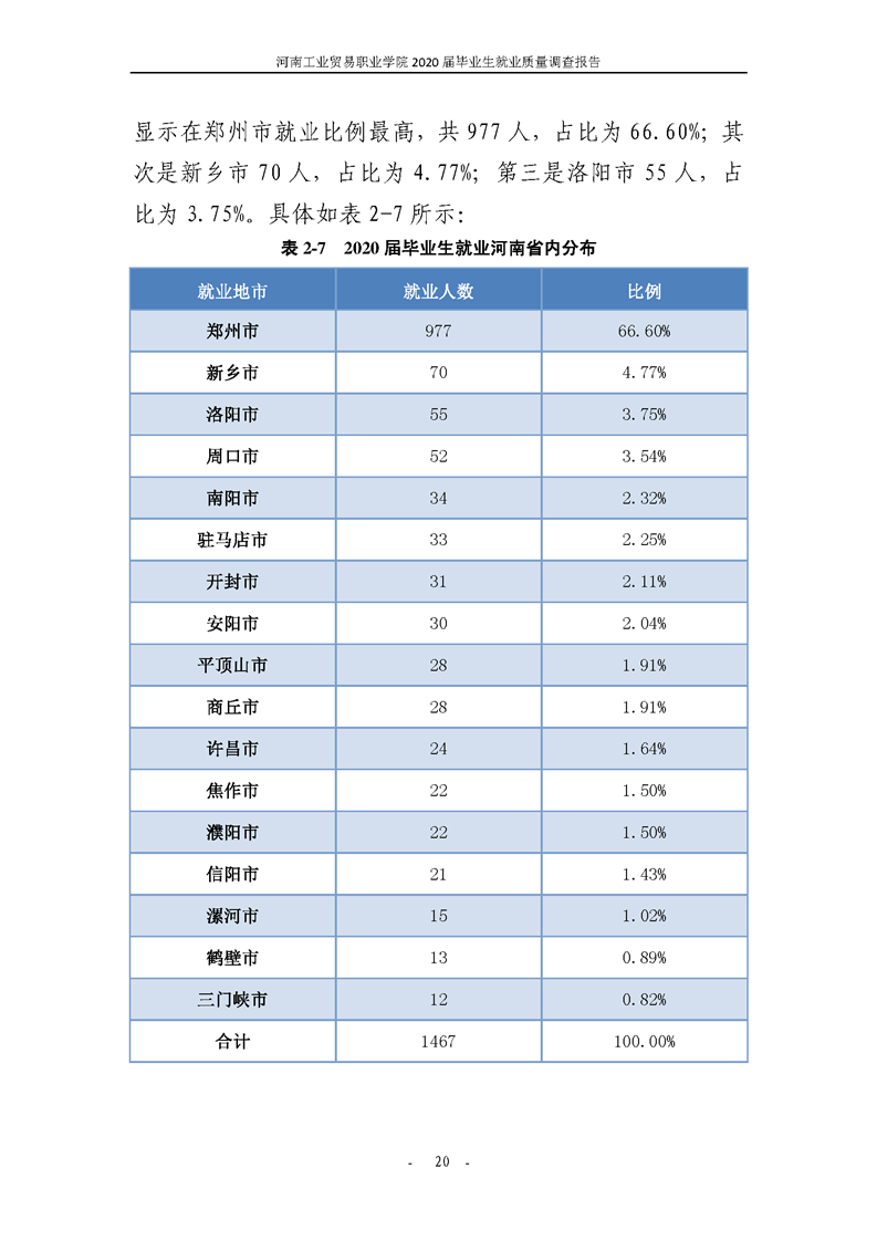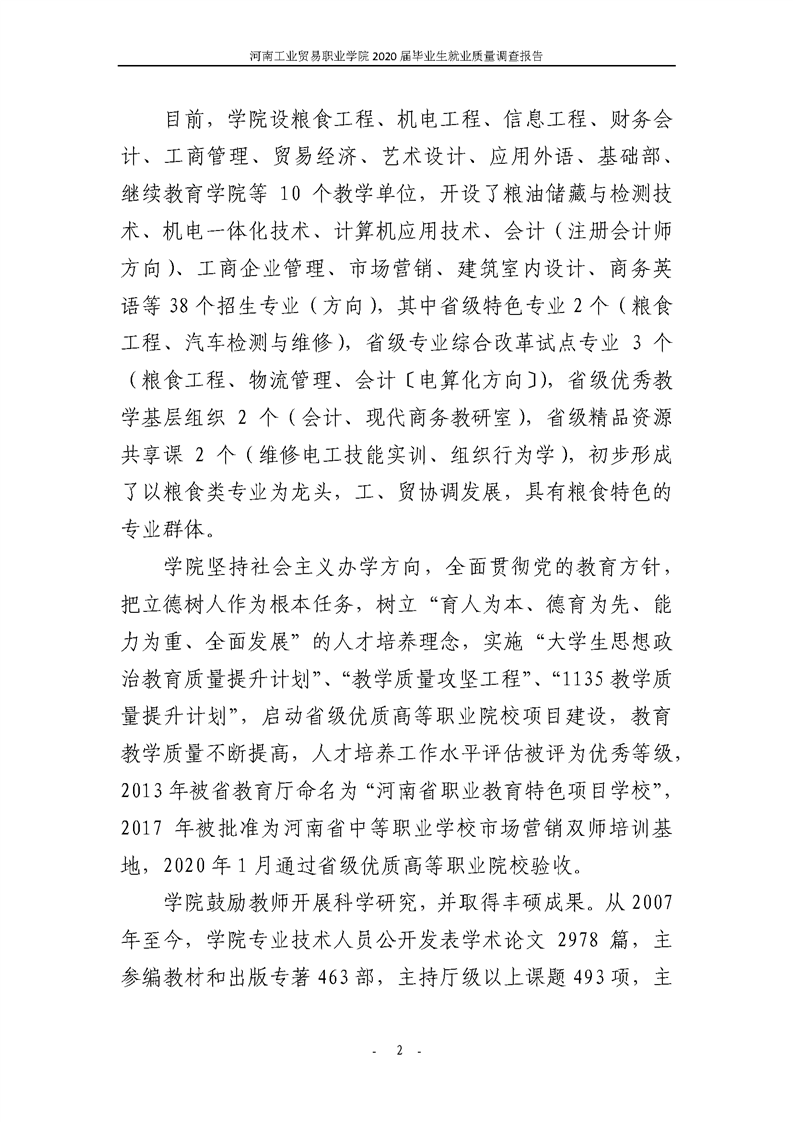 河南工业贸易职业学院2020届毕业生就业质量年度报告