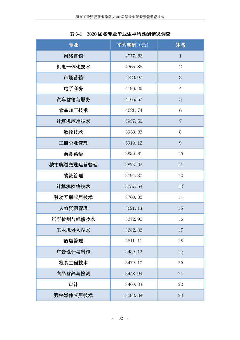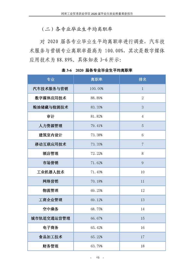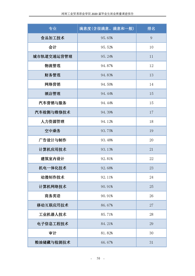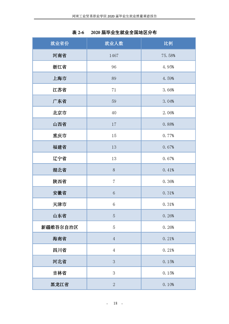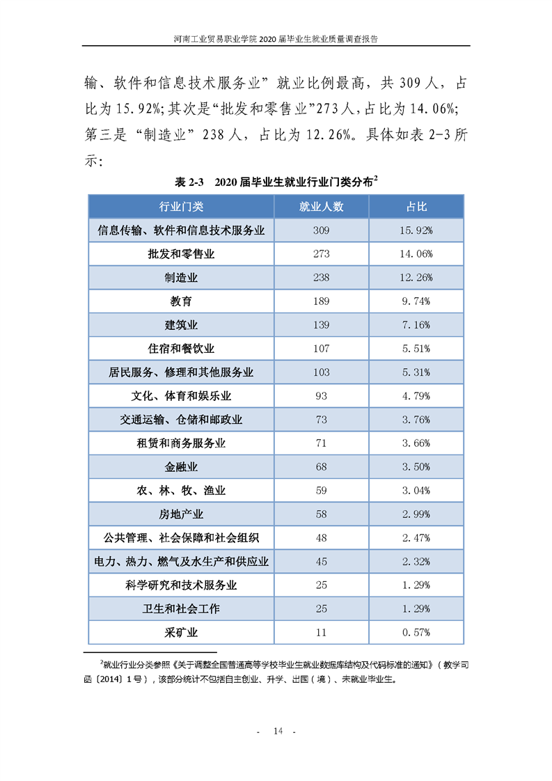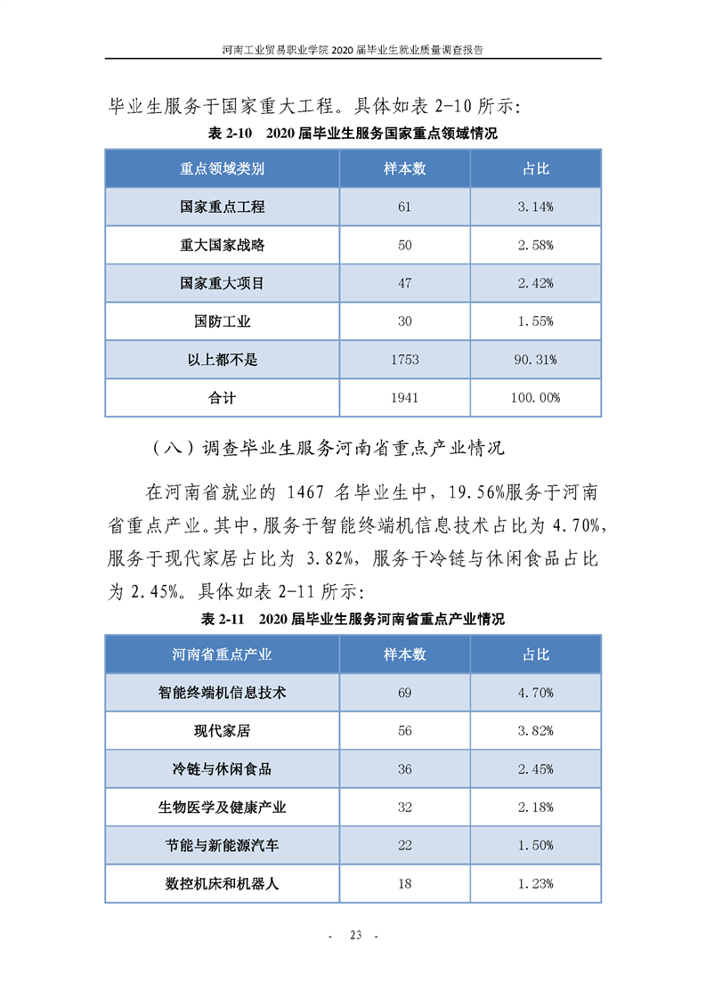 河南工业贸易职业学院2020届毕业生就业质量年度报告