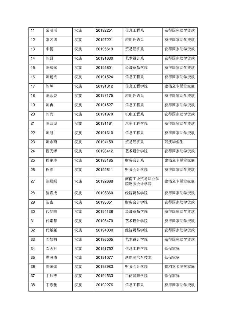 河南工业贸易职业学院2022届毕业生求职创业补贴审核通过学生名单公示