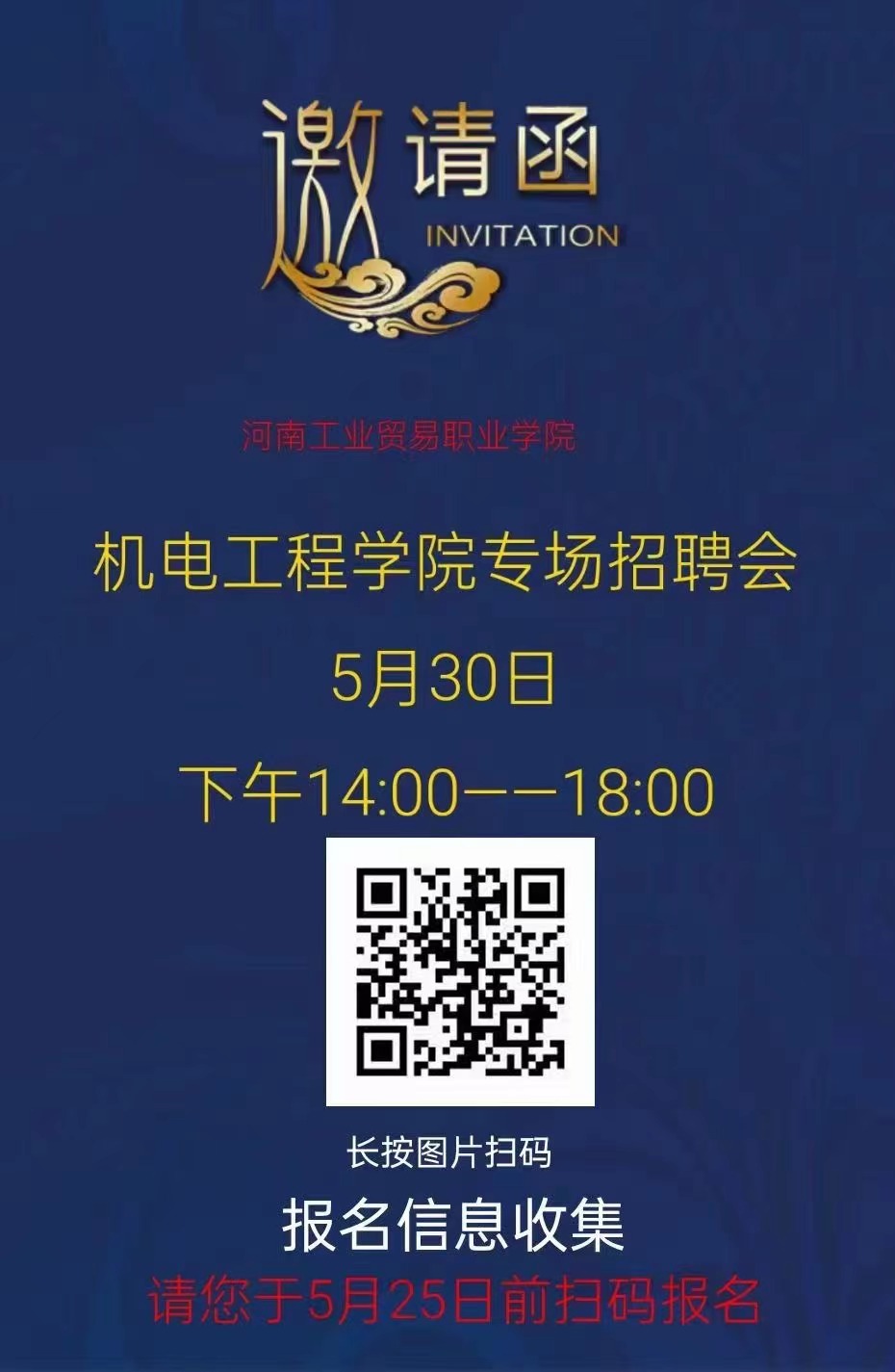 您好!感谢贵单位对我校毕业生就业工作的大力支持!为搭建用人单位和毕业生双向选择的平台,河南工业贸易职业学院粮食工程学院、机电工程学院、经济贸易学院和应用外语学院今年继续举办“2023届毕业生校园专场招聘会”,诚邀相关用人单位莅临我校招贤纳才,有关事宜如下: