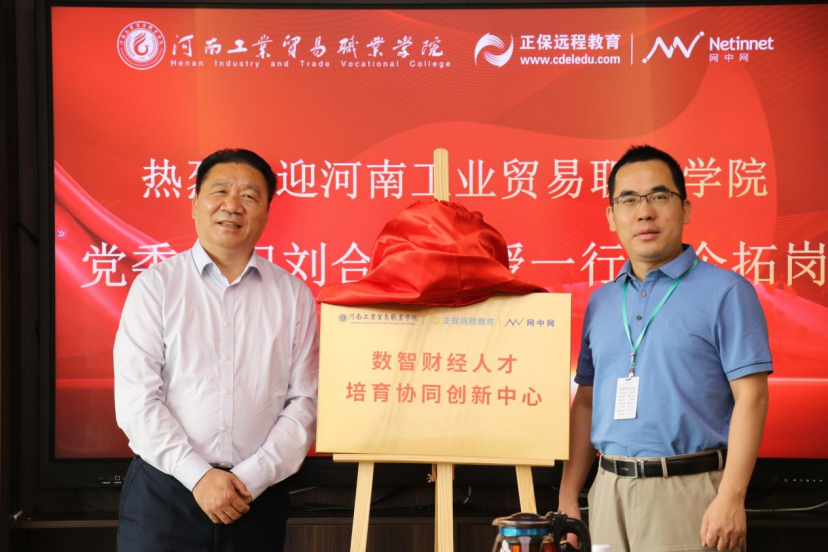 在网中网公司总部,刘合行一行参观了公司展厅、财务云共享中心、产教融合实训室、数据搭建虚拟课堂、跨专业多行业实践基地、师资培训基地、研发中心等场所并与企业方进行亲切座谈。公司总裁蔡理强详细介绍了公司发展历程、院校服务版块业务,并着重强调了公司在产教融合、校企合作方面的优势以及未来在校企共促人才发展方面的规划。刘合行在全面介绍了我校近年来取得的突出成绩后表示,网中网作为产教融合型企业,又是我校正保大数据与会计产业学院合作企业,希望双方深化在产教融合、数智财经人才培育、实习就业等方面的合作,搭建产教融合新平台,共促职业教育新发展。双方在听取了产业学院项目汇报后,共同为数智财经人才培育协同创新中心揭牌。