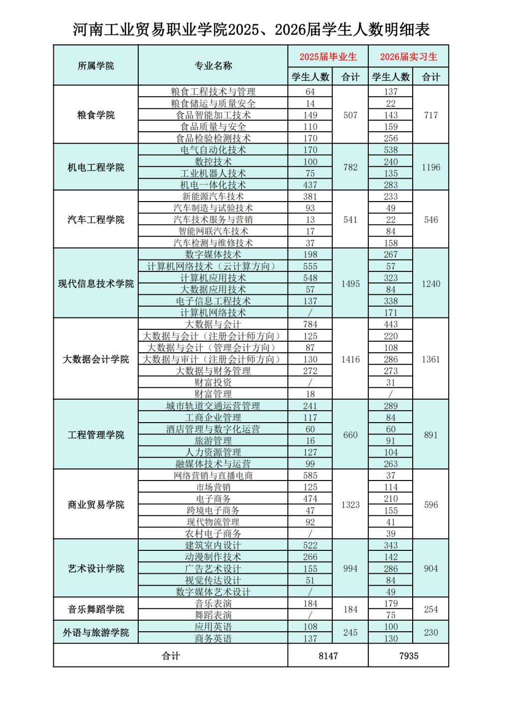 2025届毕业生、2026届实习生情况一览表
