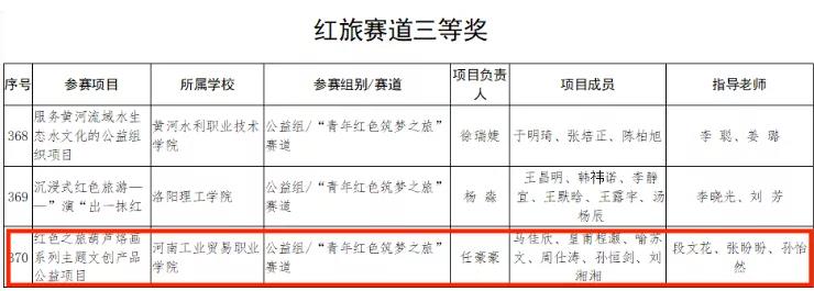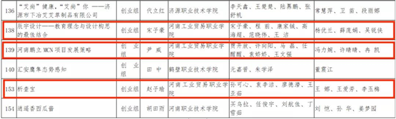 为深入贯彻教育部《关于举办第七届中国国际“互联网+”大学生创新创业大赛的通知》和《2021 年河南省“互联网+”大学生创新创业大赛暨第七届中国国际“互联网+”大学生创新创业大赛河南赛区选拔赛的通知》精神,我校自今年3月份大赛启动以来,积极动员,认真筹备,共组织1317个项目参赛;其中职教赛道1203个,红旅赛道44个,主赛道70个。省赛评审组经过学校推荐、网络评审、现场评审三轮筛选,共评选出职教赛道决赛项目330 个,主赛道和红旅赛道决赛项目823个,我校共有14个项目团队入围(职教赛道12个,主赛道1个,红旅赛道1个)。比赛经过紧张激烈的角逐,最终我校艺术设计学院“古景今宣2.0——用创意唤醒文化活力”团队,经济贸易学院“辰宇设计——教育理念与设计构思的最佳组合”团队、“河南鹏立MCN项目”团队和“析查宝一让大数据对商家不再遥不可及”团队,汽车工程学院“一扫无锈-锈蚀螺栓的终结者”团队和“自主研发---新型汽车尾气余热利用装置”6个团队荣获职教赛道三等奖。艺术设计学院“红色之旅葫芦烙画系列主题文创产品公益项目”荣获红旅赛道三等奖。本次大赛取得的优异成绩,是在学校党委的高度重视和各二级学院的大力支持下,我校师生团结进取、奋力拼搏、共同努力的结果。我校将通过“大赛”为引领,持续推动职业教育高质量发展,不断深化创新创业教育改革,加快培养创新创业人才,以赛促教,以赛促学,以赛促创,引导学生坚定执着追理想,实事求是闯新路,不断开创我校创新创业工作新局面!