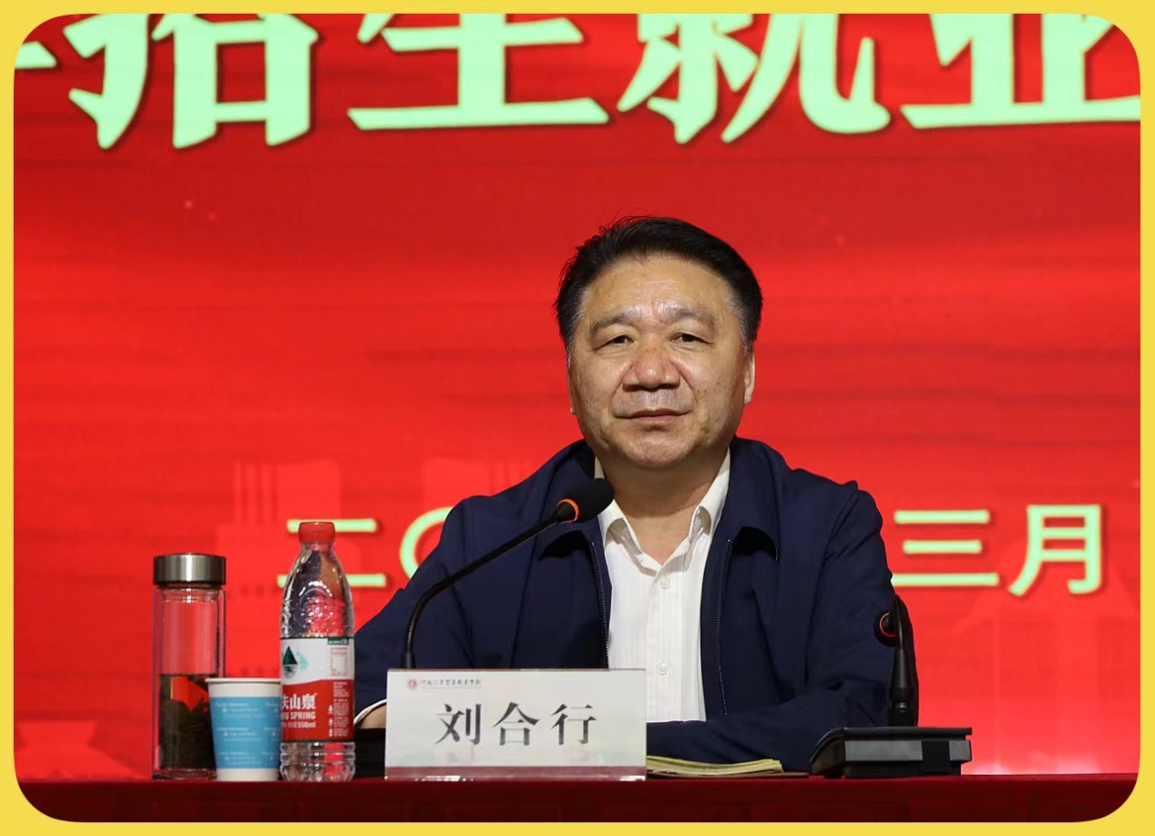 最后,刘合行书记做了总结讲话。刘合行书记对2021年招生就业工作取得的成绩给予充分肯定,并对做好2022年招生就业工作提出四点要求:一是把握工作目标、认清形势、充满自信地投入到招生就业工作中去;二是发扬“全员做好招生就业”的工作机制,抓好骨干队伍、抓好骨干人员;三是打好招生宣传“校内、校外两个战场”;四是落实好招生就业制度,加强规范管理。