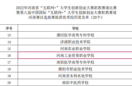 7月26日,2022年河南省“互联网+”大学生创新创业大赛暨第八届中国国际“互联网+”大学生创新创业大赛河南赛区选拔赛圆满落幕,我校选手取得1个二等奖、12个三等奖的优异成绩,并首次荣获优秀组织奖,取得此项赛事的新突破。