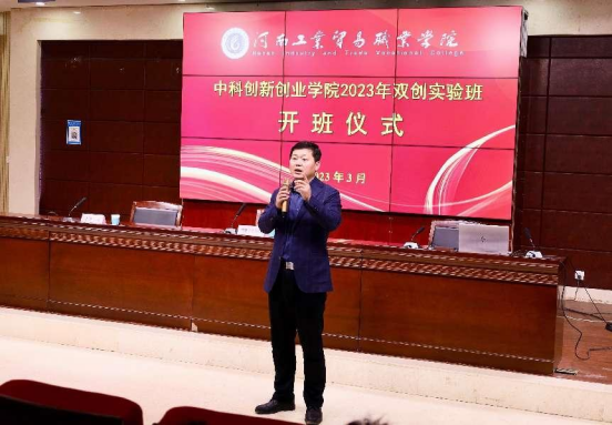 3月1日晚6时,河南工业贸易职业学院中科创新创业学院2023年双创实验班在龙湖校区3101教室隆重开班。本次实验班由我校就业处牵头组织,授课专家由中科招商集团副总裁、中科创大(北京)教育科技有限公司联席总裁郭科研先生,中科创大(北京)教育科技有限公司院校运营总监、三门峡虢之源创业服务有限公司总经理、三门峡墨点文化传播有限公司董事长王靖宇先生担任。学员为各学院在所有报名的523名同学中,精心挑选和极力推荐、能够参加今年“互联网+”创新创业大赛的73位种子选手。