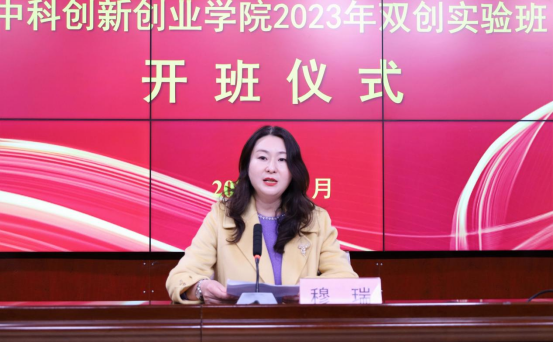 开班仪式上,就业处处长穆瑞作了致辞。穆瑞首先对入围实验班的学员表示热烈祝贺,并鼓励学员们勤学善思、敢于拼搏、勇于奋进,要通过学习来坚定自己树立远大的理想信念。她强调,本次培训不仅仅要为2023年“互联网+”创新创业大赛再获佳绩打好基础,更要把“敢争、敢想、敢闯、敢创”的理念融入学习全过程,培养学员们的实干精神、创新精神、工匠精神。