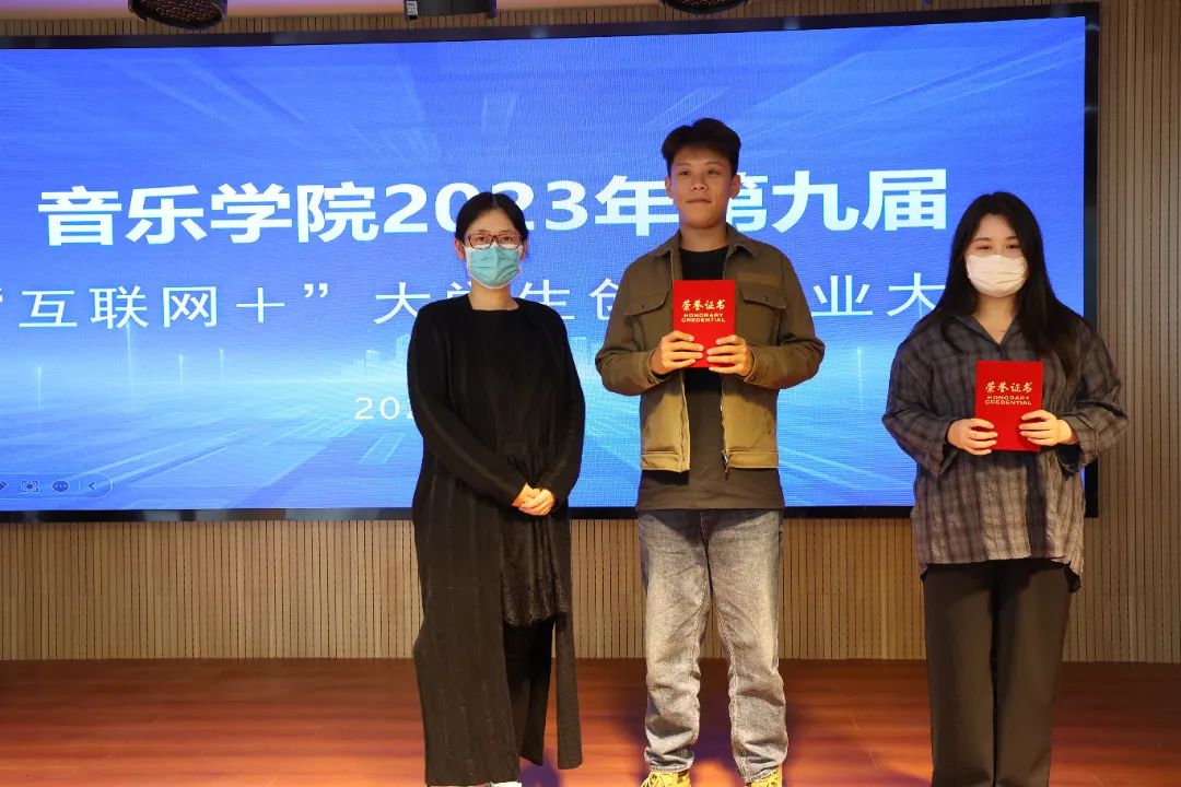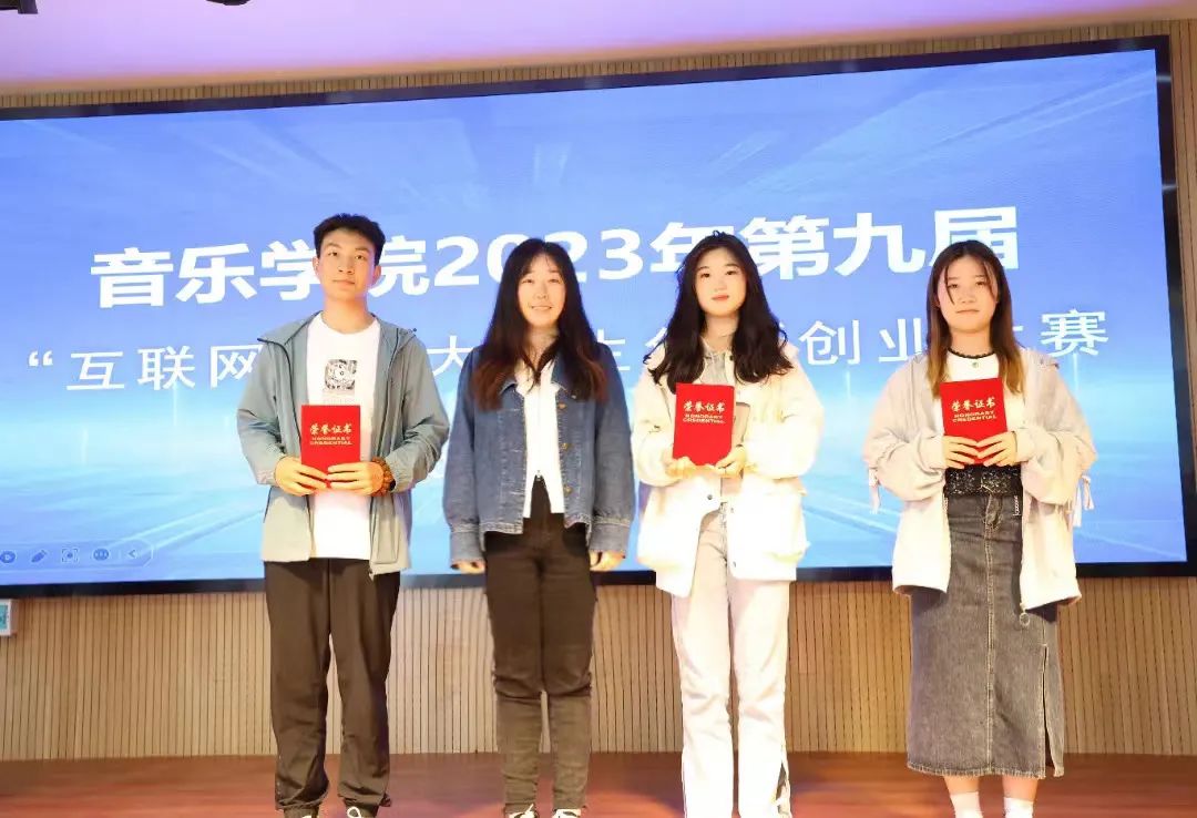 本次院赛分为项目展示、现场答辩和评委点评三个主要环节。各参赛队从项目背景、痛点问题、市场需求、发展预期四个方面介绍了创业项目的可行性,在有限的时间内将项目特点亮点展示在评委老师及观众面前。各项目各有千秋,答辩环节,各组队员应答从容、冷静,表现出良好、默契的团队配合将学生创新精神、创业意识淋漓尽致地展现出来。评委老师结合项目优缺点,在项目书撰写、创新点发掘、运营风险、投资收益等方面做出深刻剖析并提出完善建议。经过激烈角逐21音乐102班《智爱》、22音乐103班《国音飞扬》荣获一等奖,21音乐101班《音为“豫”见》、22音乐102班《路亚主题鱼塘》荣获二等奖,21音乐103班《青旅》、22音乐101班《樱桃助农新型电商》、22音乐104班《餐饮小吃培训》荣获三等奖。