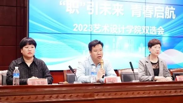 为推动学习贯彻习近平新时代中国特色社会主义思想主题教育走深走实,全面落实党中央、国务院“稳就业”“保就业”决策部署,促进毕业生更高质量充分就业,5月27日上午10点,艺术设计学院在龙湖校区体育馆成功举办“职”引未来,青春启航2023年校园双选会。本次招聘会共有40多家用人单位提供700多个就业实习岗位,双选会开幕式在3101报告厅举行。