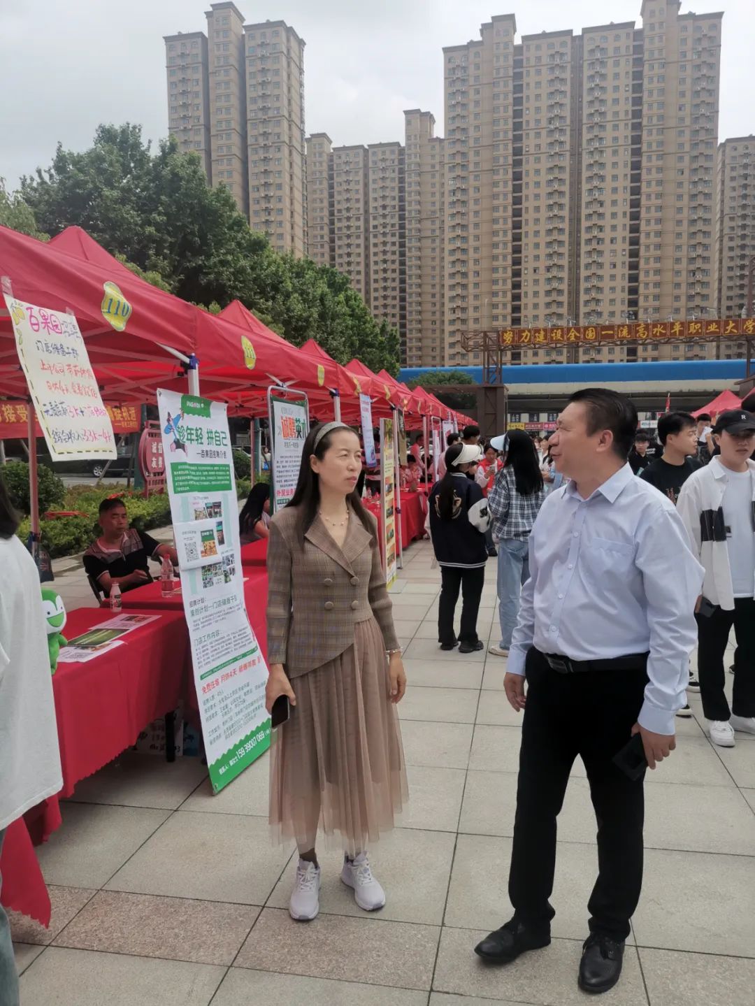见面会后,企业代表移步至红旗广场参加双选会。本次双选会由河南工业贸易职业学院就业处主办,为我院毕业生提供了众多专业对口的岗位。校党委书记刘合行亲临现场了解双选会情况,并与用人单位进行了亲切交流,认真听取了用人单位对我校人才培养、学科专业、校企合作等方面的意见和建议,同时鼓励我院发挥外语专业优势,开源拓岗,推动校企合作走深走实。