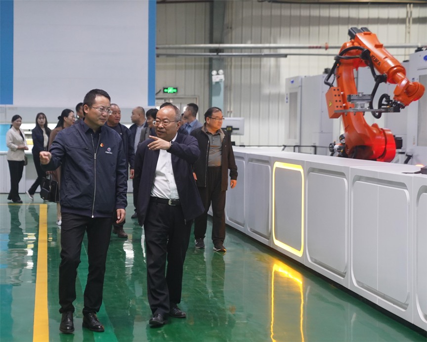 会后,李国锋一行实地考察了智能制造生产工厂、管路生产车间等地,并与机电工程学院在695厂工作、实习的学生亲切交流。