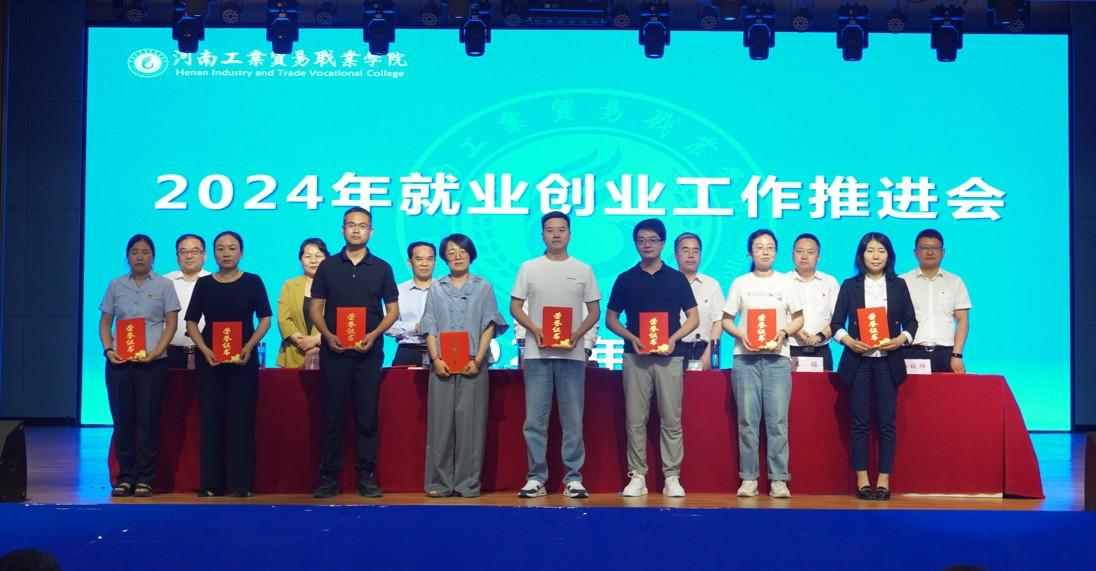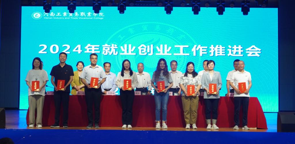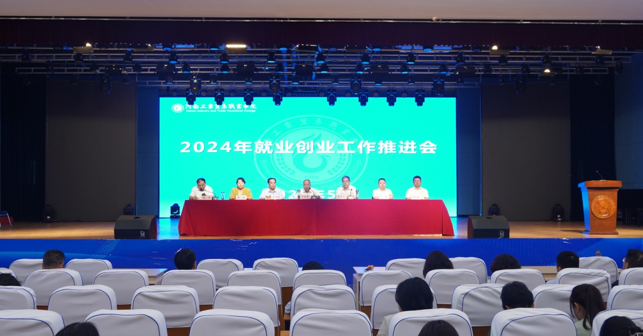 5 月 14 日下午,2024 年就业创业工作推进会在我校龙 湖校区学术报告厅隆重召开。学校领导班子成员、各部门 党政负责人、副科级以上干部、2023 年度就业工作先进代 表以及 2024 届毕业班辅导员出席了本次会议。会议由校长 曹利强主持。
