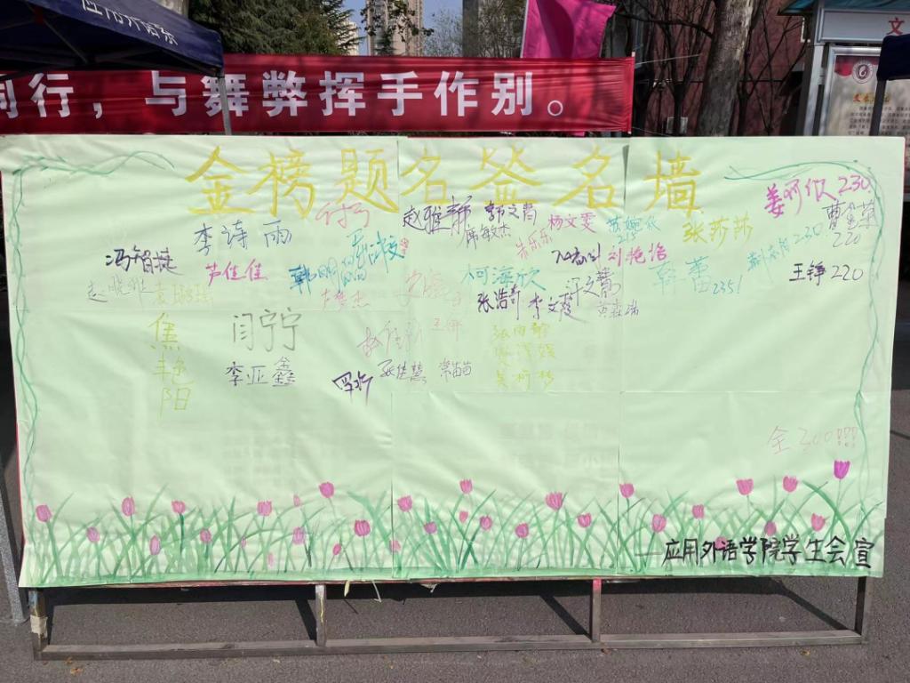 为了鼓舞考生士气,我院为考生们准备了“金榜题名”签名墙,预祝各位考生金榜题名,旗开得胜!