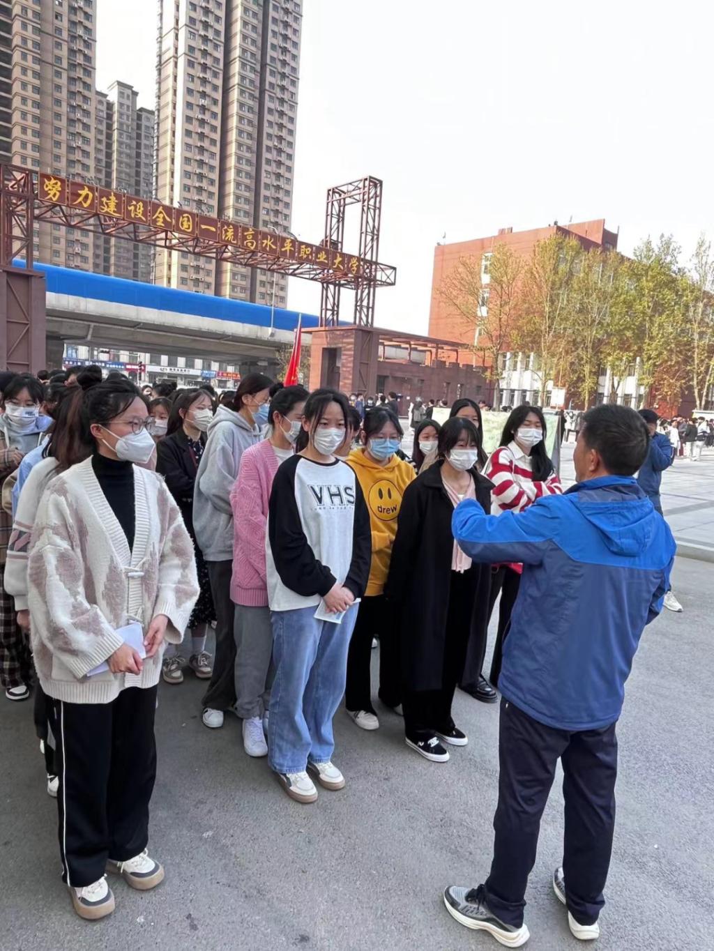 为确保2023届毕业生专升本考试平稳有序进行,4月2日早上7点50分,应用外语学院党总支书记李松奇、副书记田莉莉,团总支书记张艳华一行来到现场送考,鼓励考生沉着冷静,全力一击。