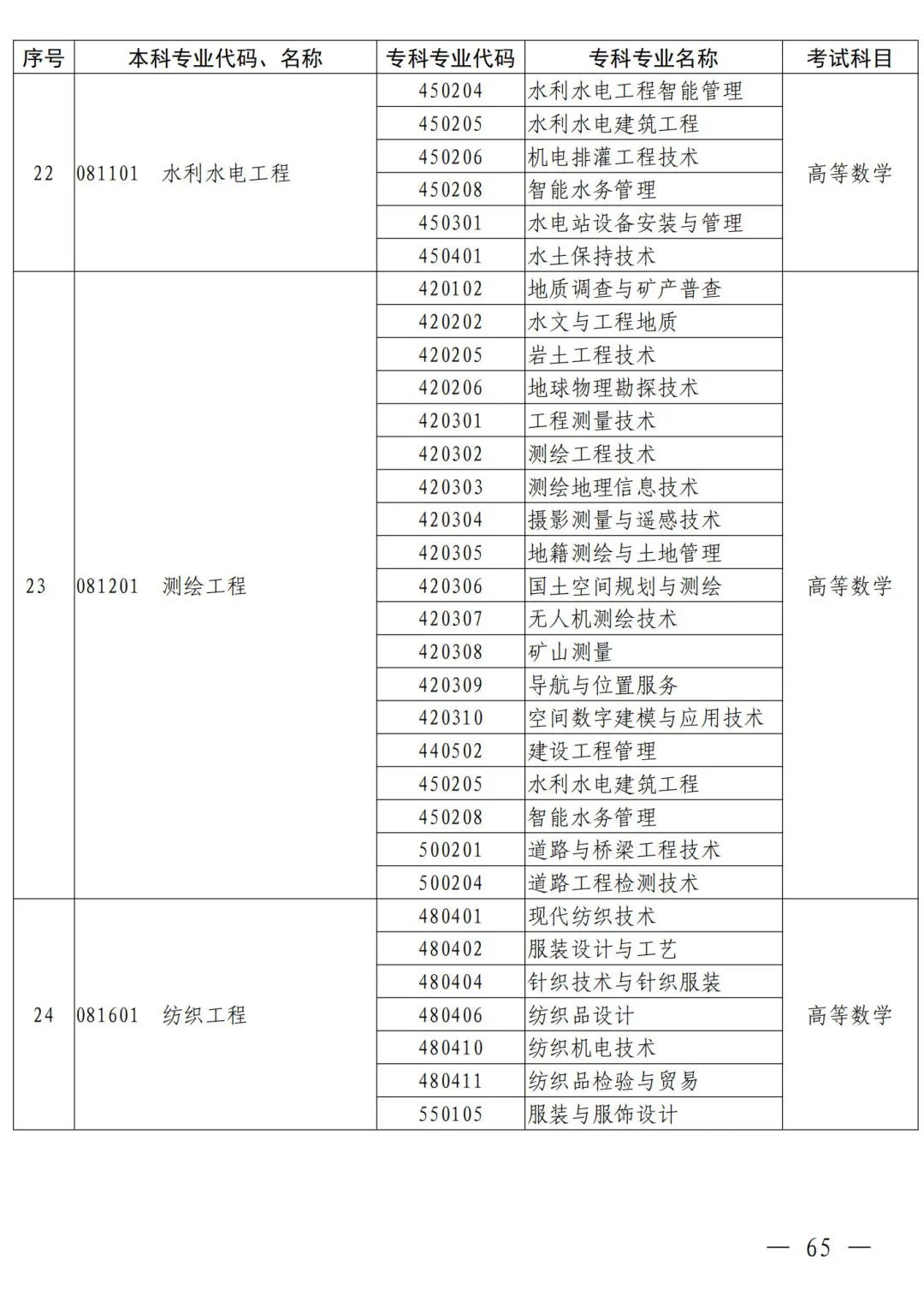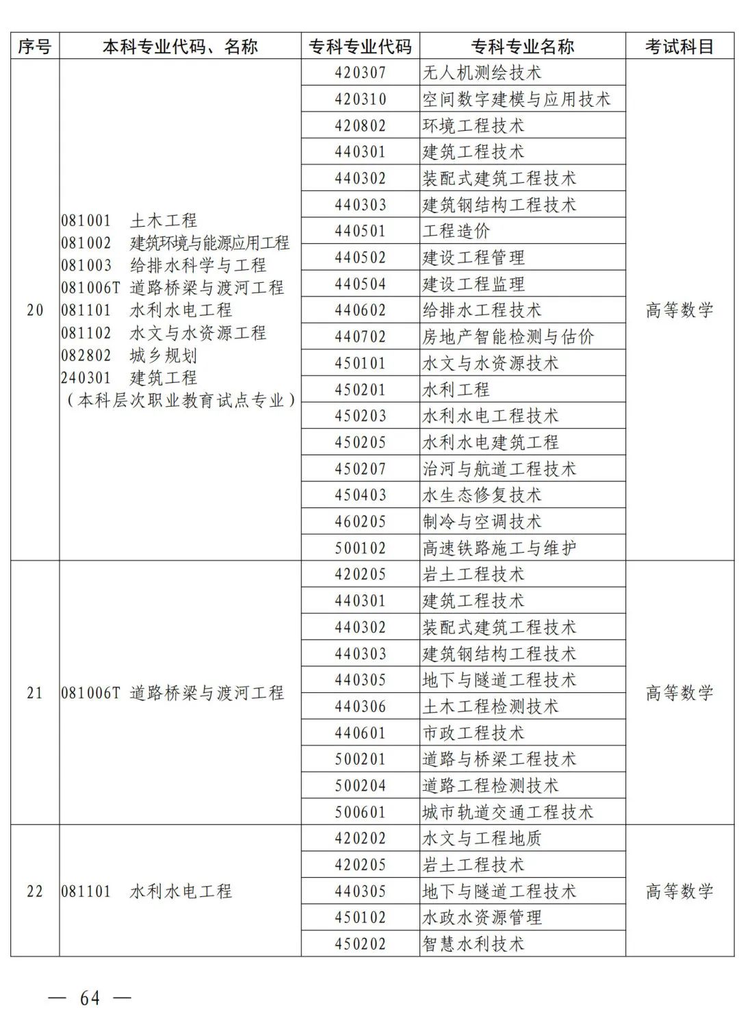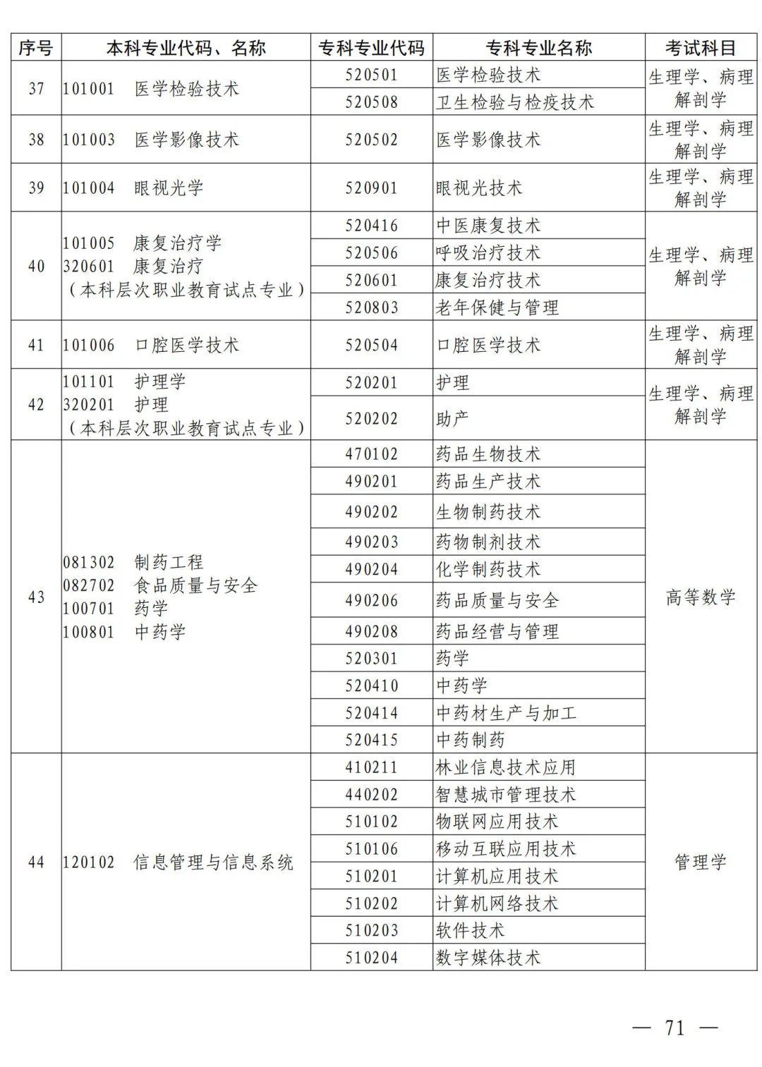 (一)招生高校和专业详见《河南省2024年普通高职(专科)毕业生进入本科阶段学习招生高校及专业总表》(附件1)。本、专科专业对照及考试课程,详见《本、专科专业对照及考试课程一览表》(附件2)。凡不符合《护士条例》规定的申请护士执业注册条件,且不能对照普通本科护理学专业、职业教育本科护理专业安排专升本考试的医学美容技术(原医疗美容技术)、呼吸治疗技术等专科专业,不得擅自安排招生。高校分专业招生计划另文下达。