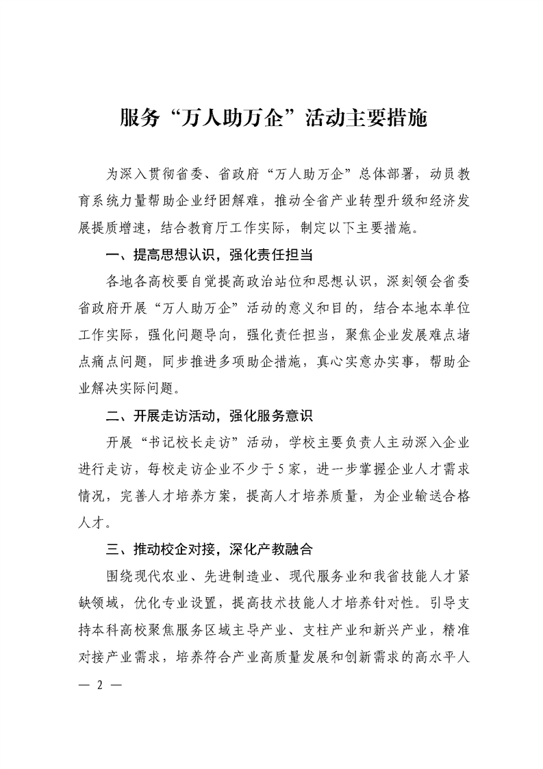 河南省教育厅关于印发《服务“万人助万企”活动 主要措施》的通知