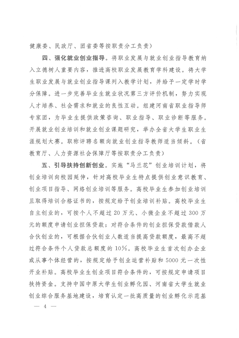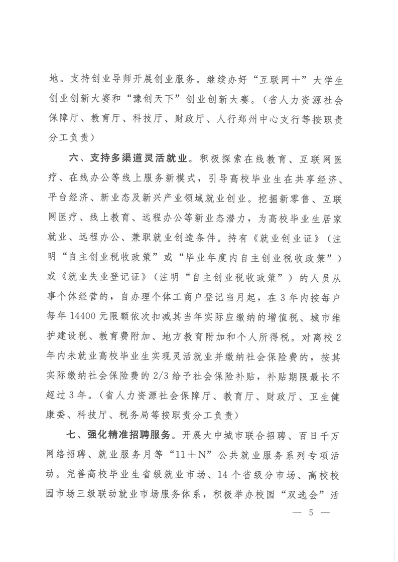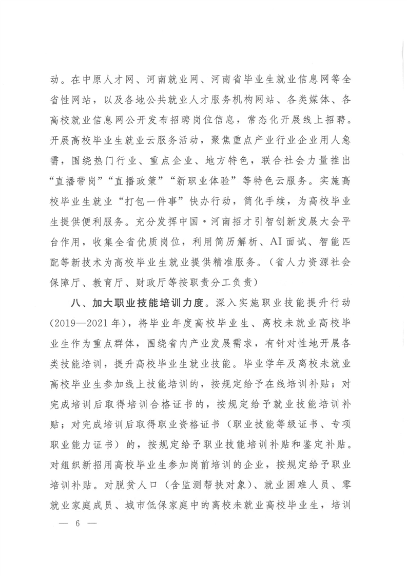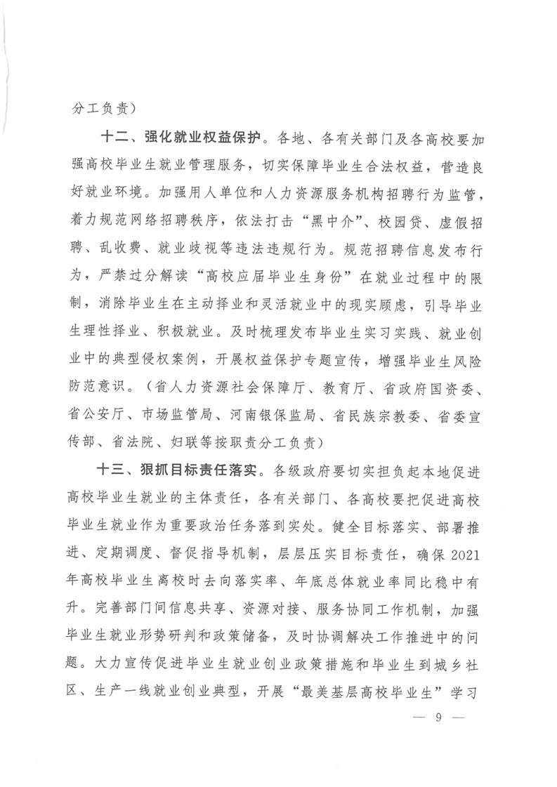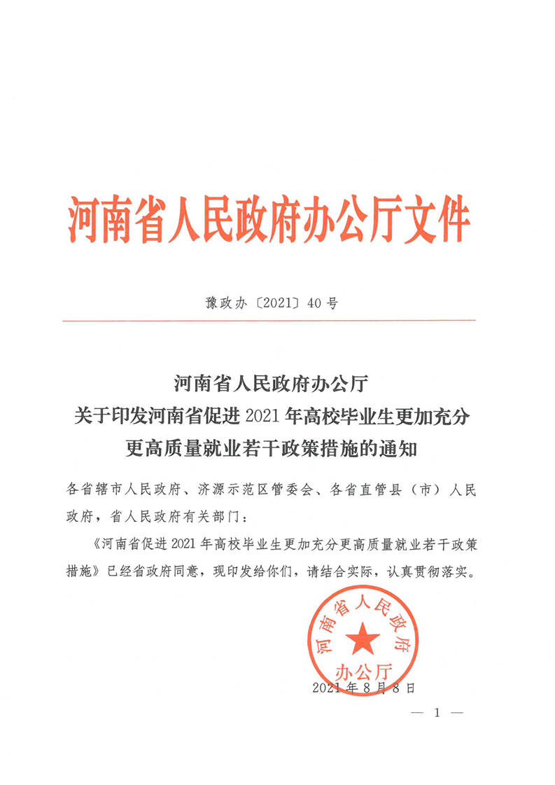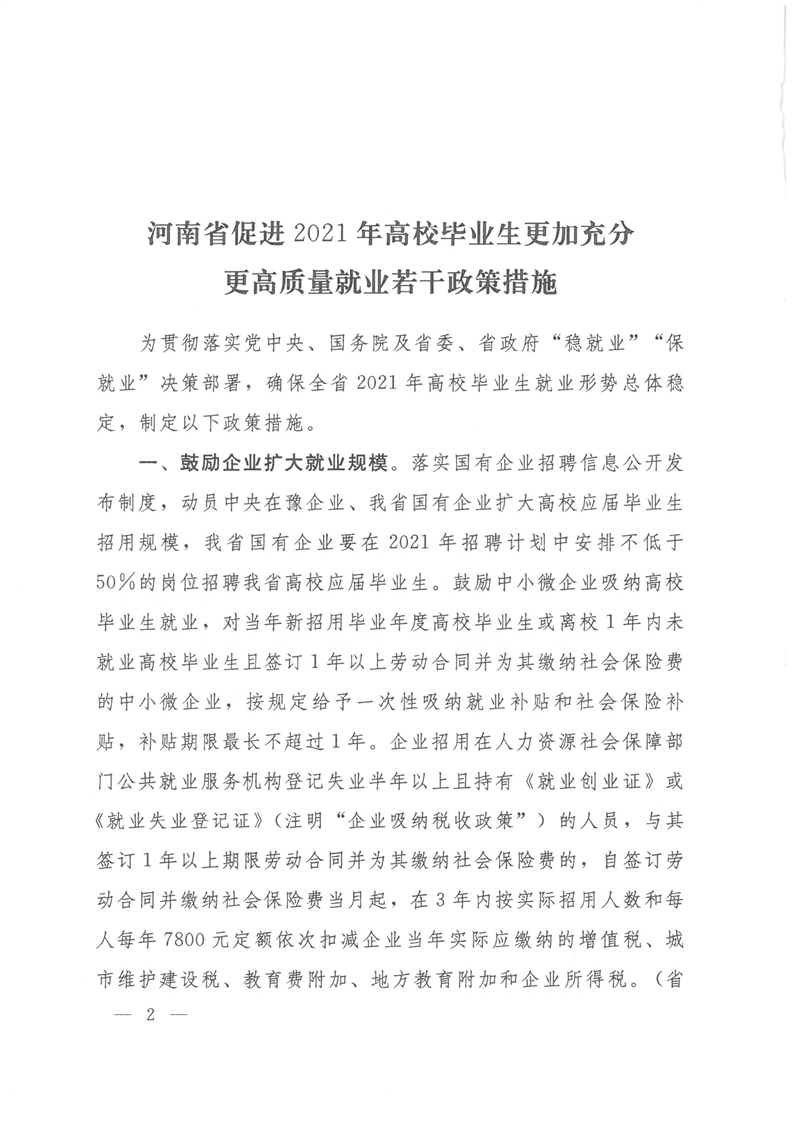 河南省人民政府办公厅关于印发河南省促进2021年高校毕业生更加充分更高质量就业若干政策措施的通知(豫政办40号)