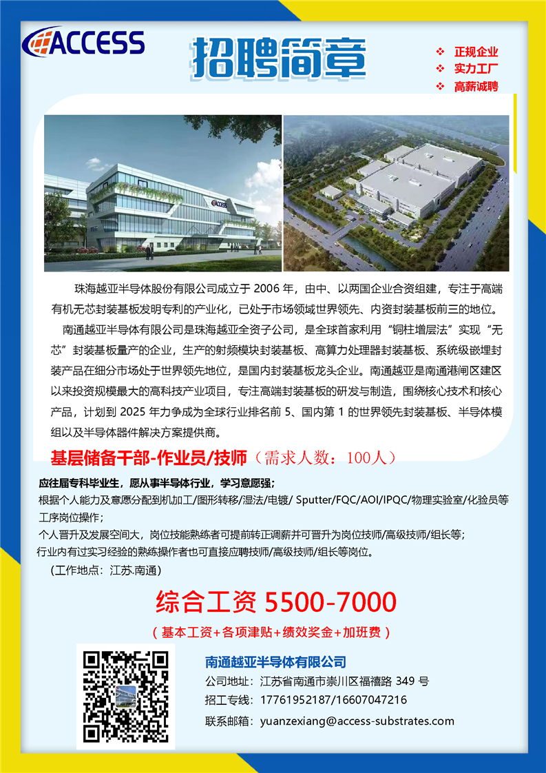 作业员/技师---珠海越亚半导体股份有限公司