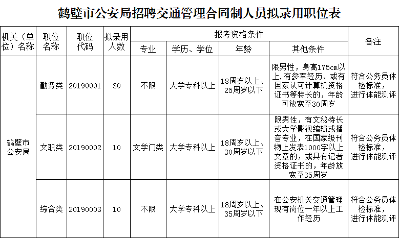 1.鹤壁市公安局招聘交通管理合同制人员拟录用职位表.xlsx