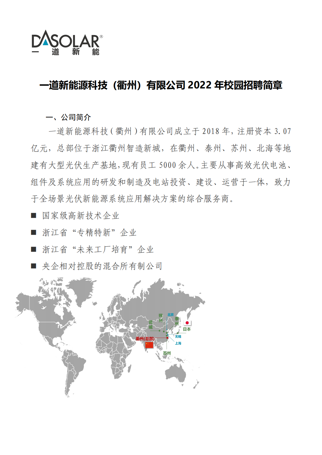 【招聘】一道新能源科技(衢州)有限公司 诚聘!