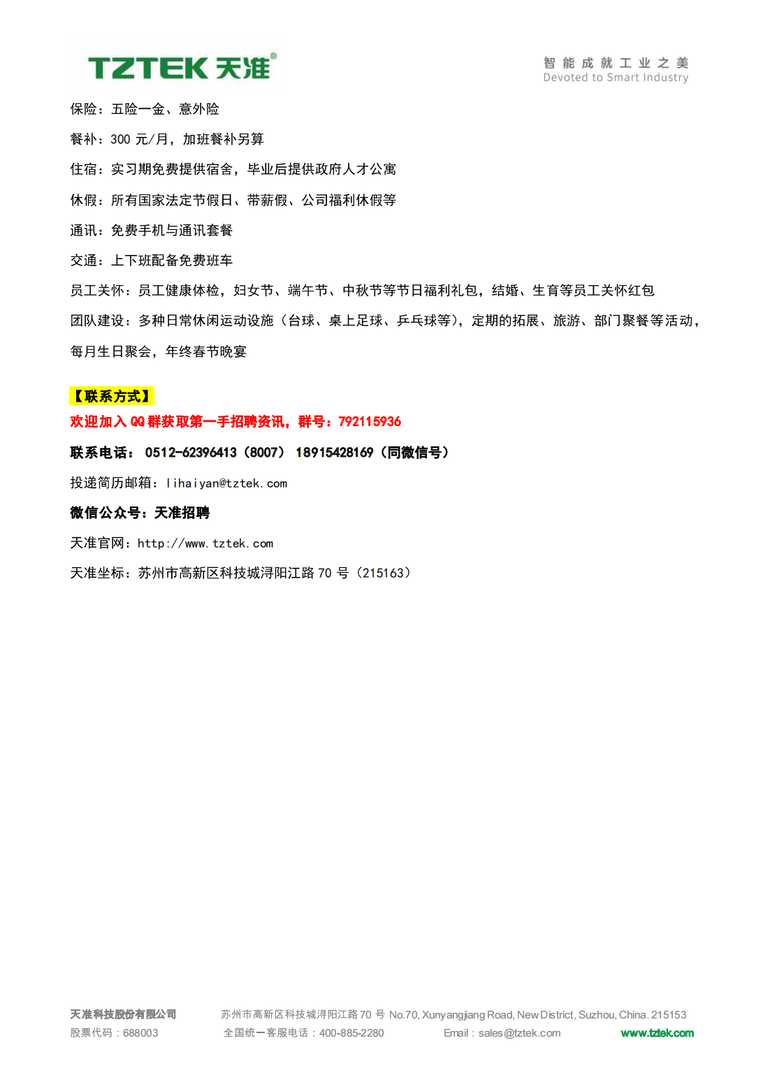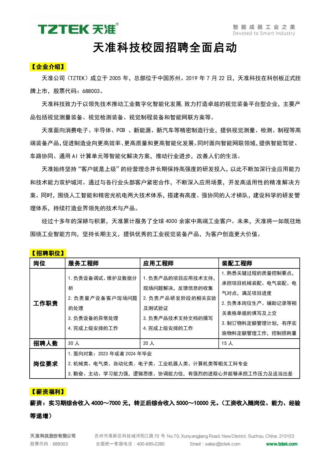 【招聘】 天准科技 诚聘!