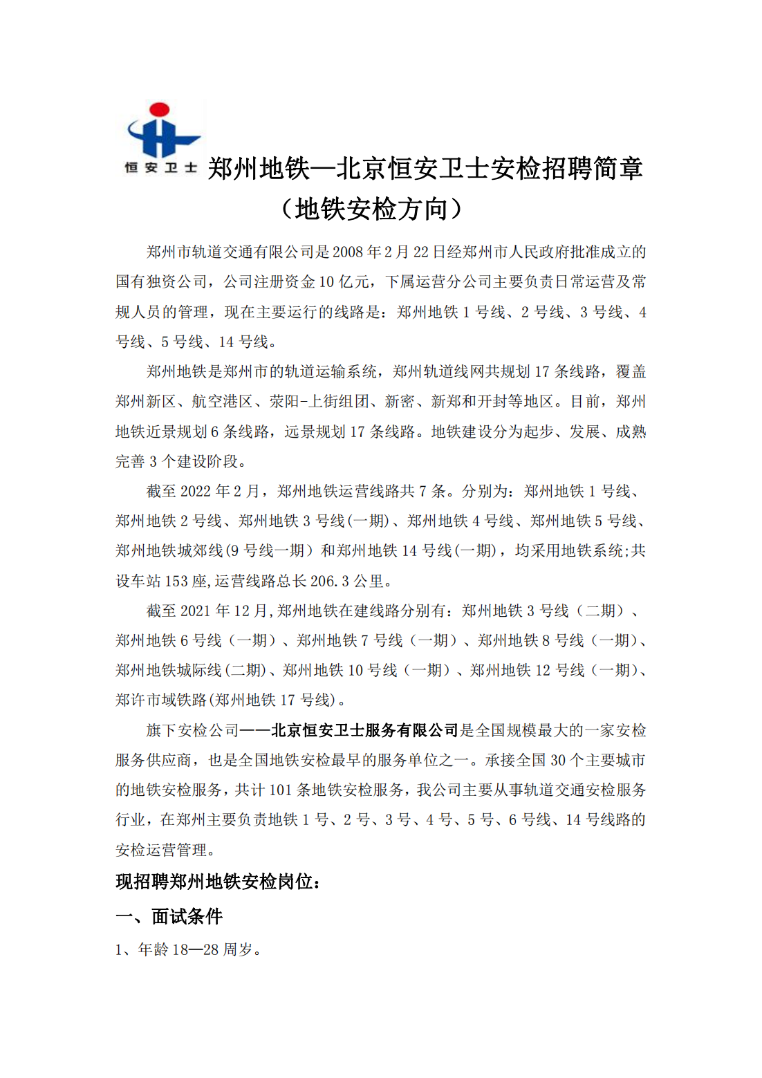 【招聘】 郑州市轨道交通有限公司 诚聘