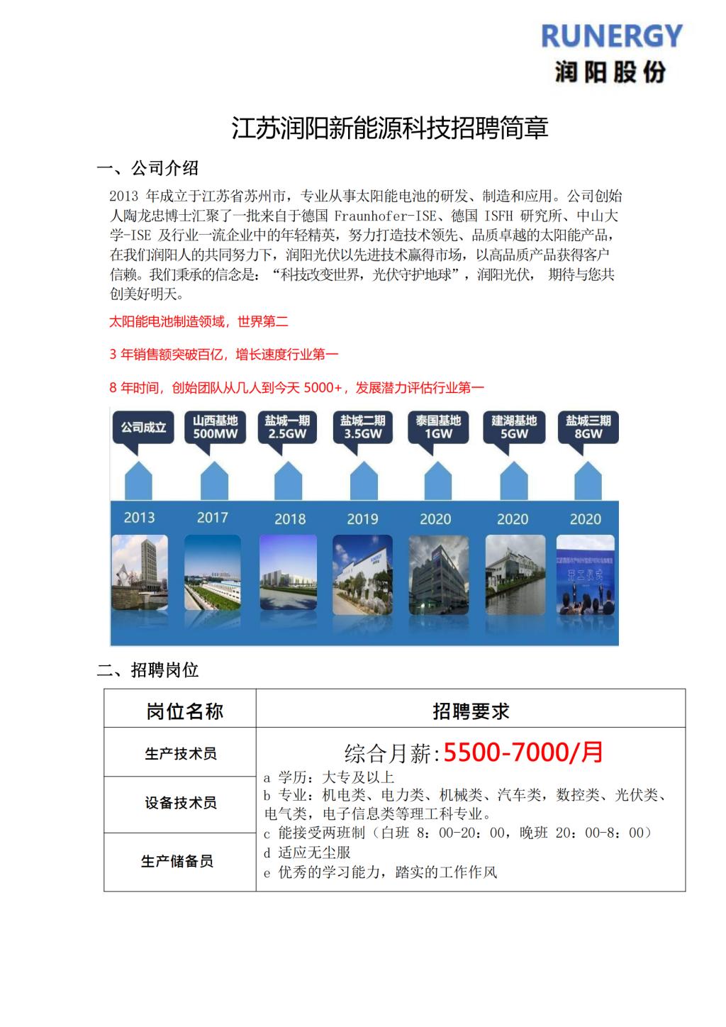 【招聘】江苏润阳新能源 诚聘!