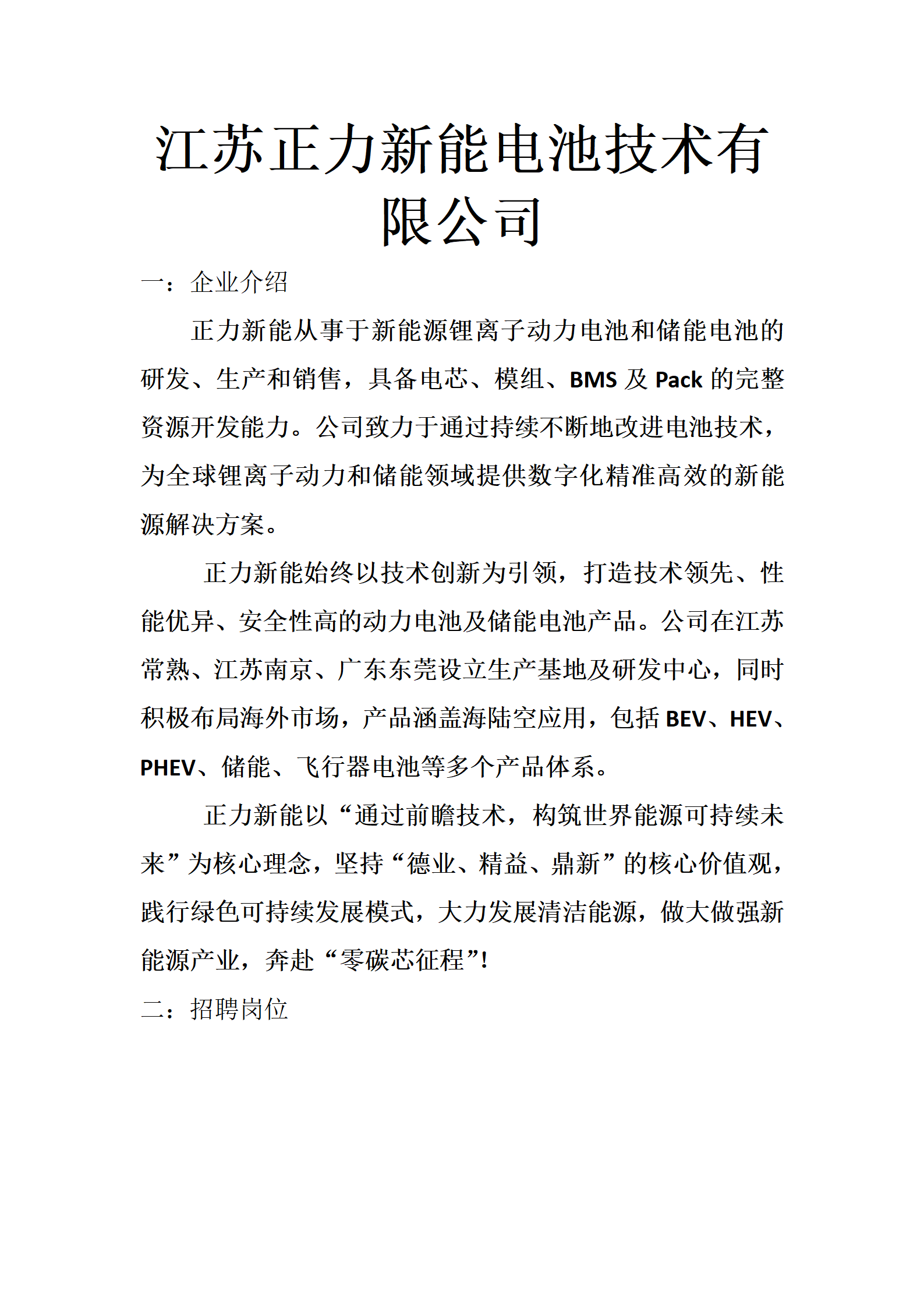 【招聘】江苏正力新能电池技术有限公司 诚聘!