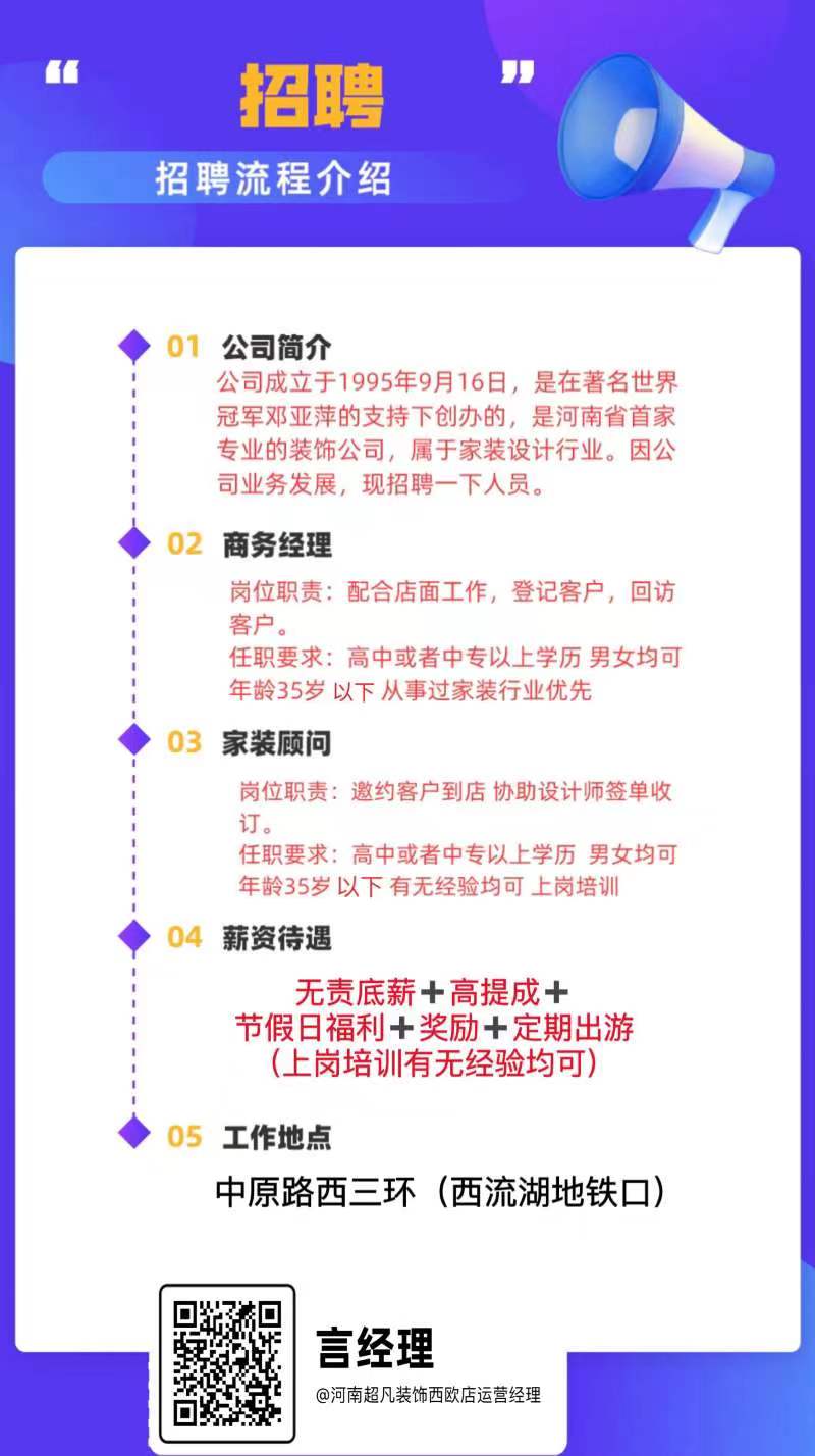 【招聘】河南超凡装饰西欧店 诚聘!