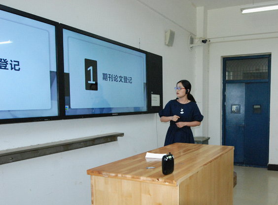 袁淑华老师强调在科研管理云平台登记科研成果时的注意事项