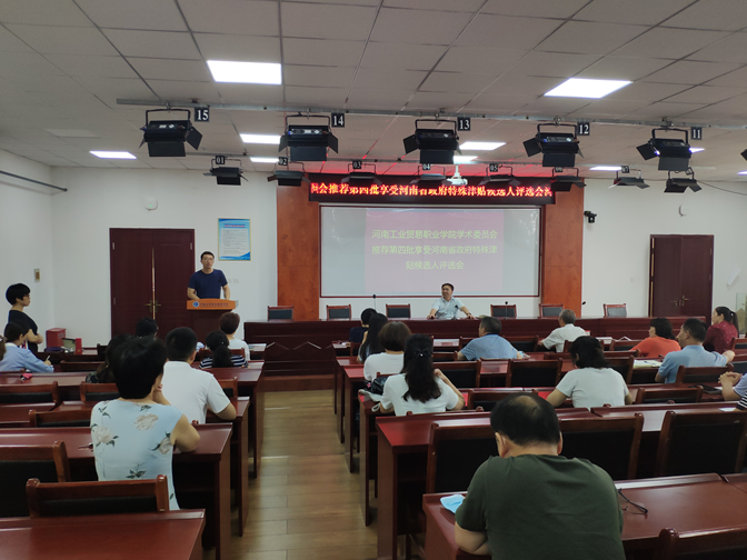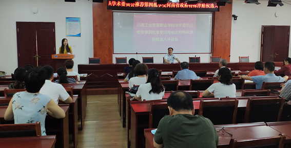 根据《河南工业贸易职业学院关于成立学术委员会的通知》(豫工贸院[2020]73号)及《河南工业贸易职业学院学术委员会章程》的要求,2020年7月10日,科学研究处针对通过了人力资源处资格审核的,符合第四批享受河南省政府特殊津贴两位候选人的情况,组织了25位学术委员会专家进行了申报把关和评审推荐,学院纪委全程监督。专家组推荐王晓航老师作为第四批享受河南省政府特殊津贴的候选人。