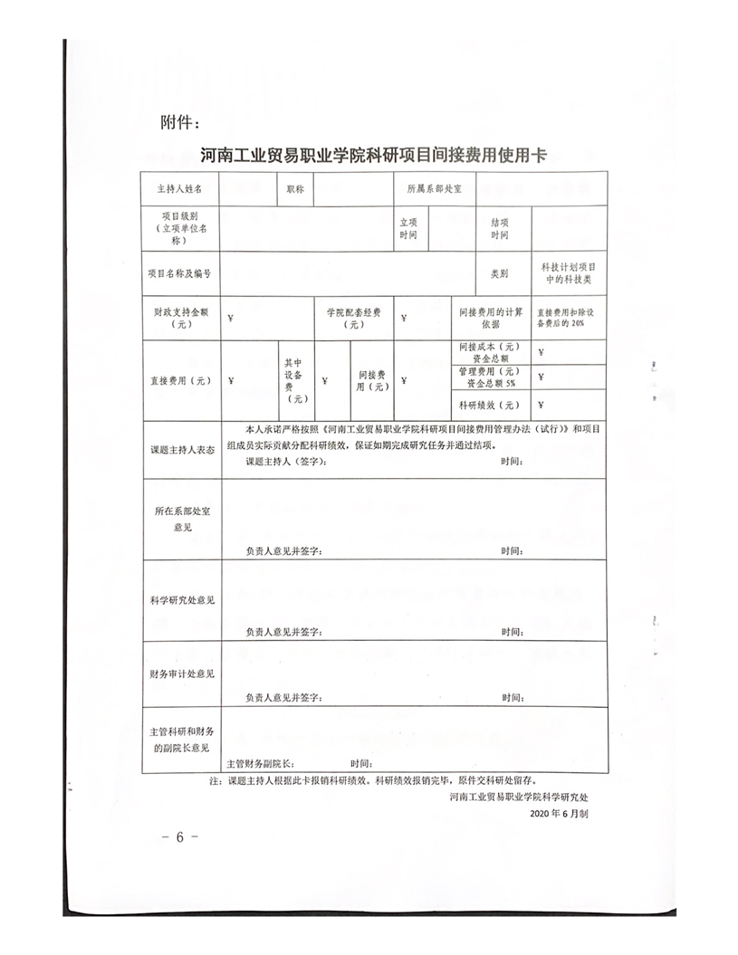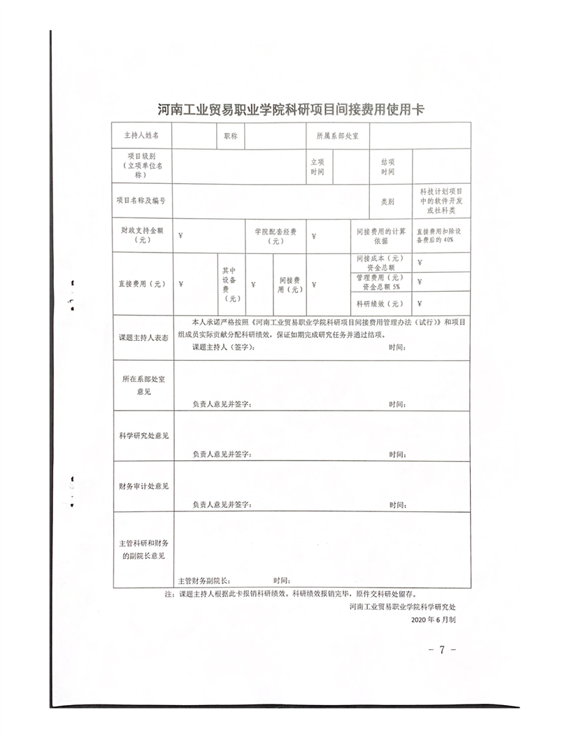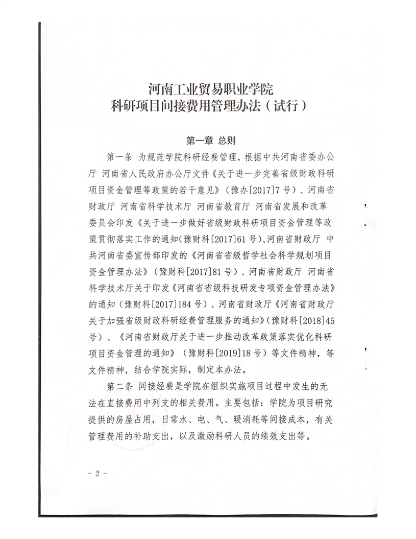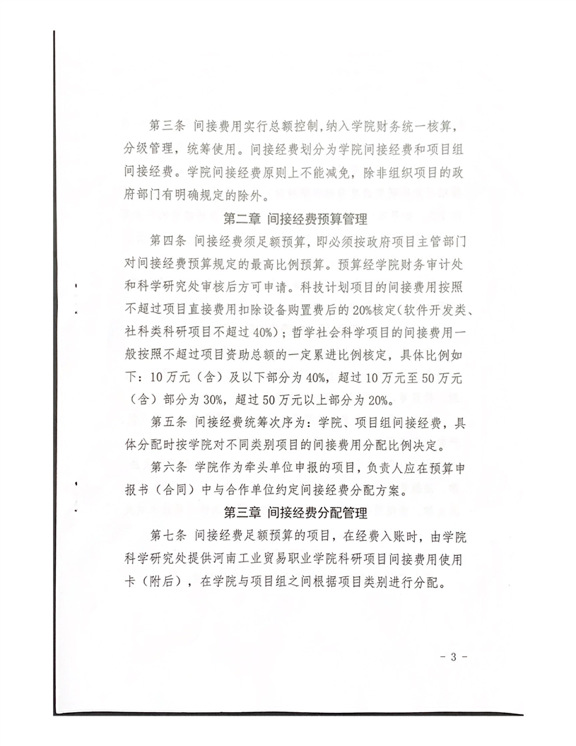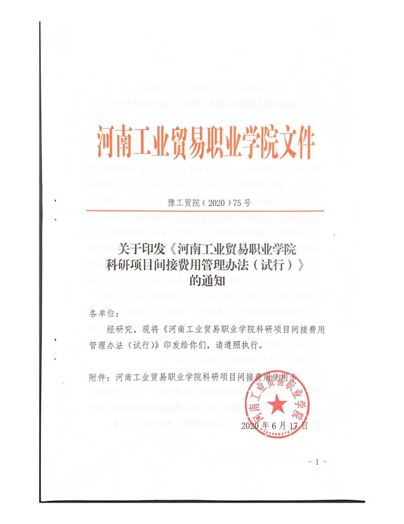 关于印发《河南工业贸易职业学院科研项目间接费用给管理办法(试行)》的通知