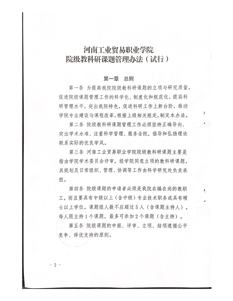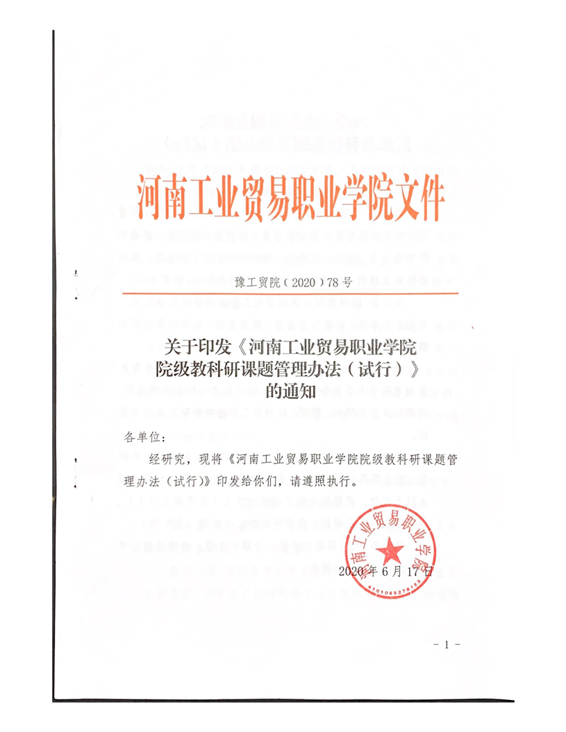关于印发《河南工业贸易职业学院院级教科研课题管理办法(试行)》的通知